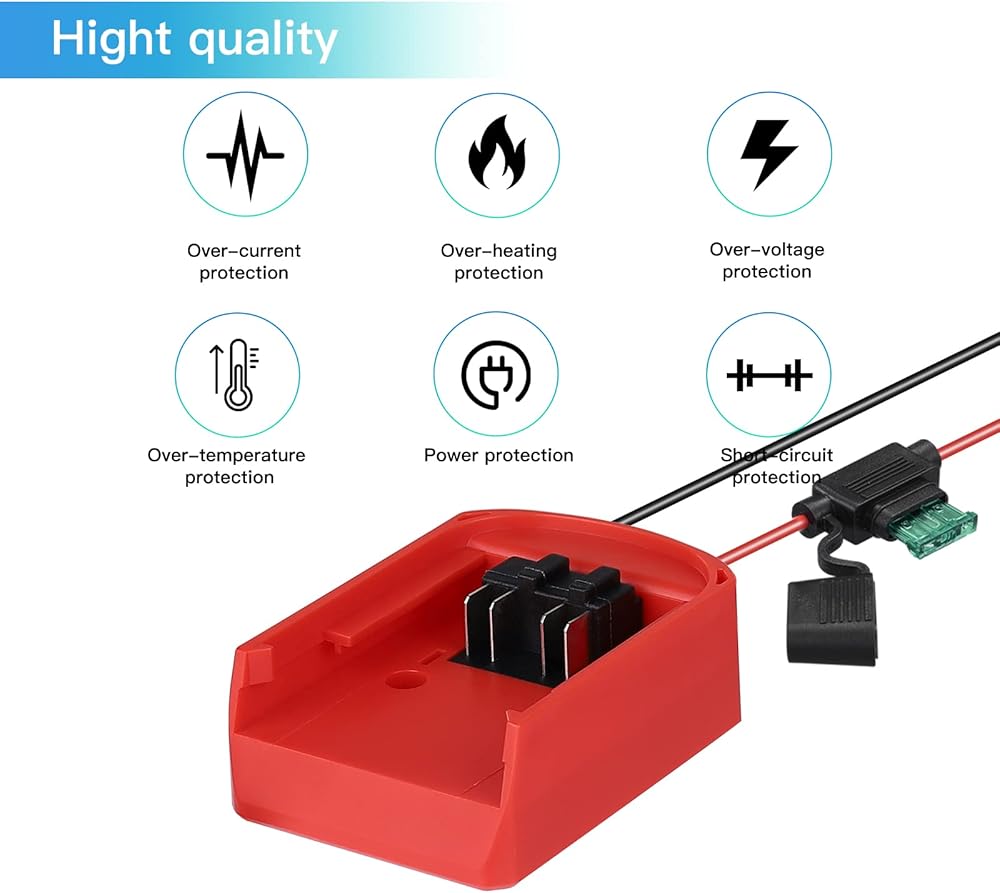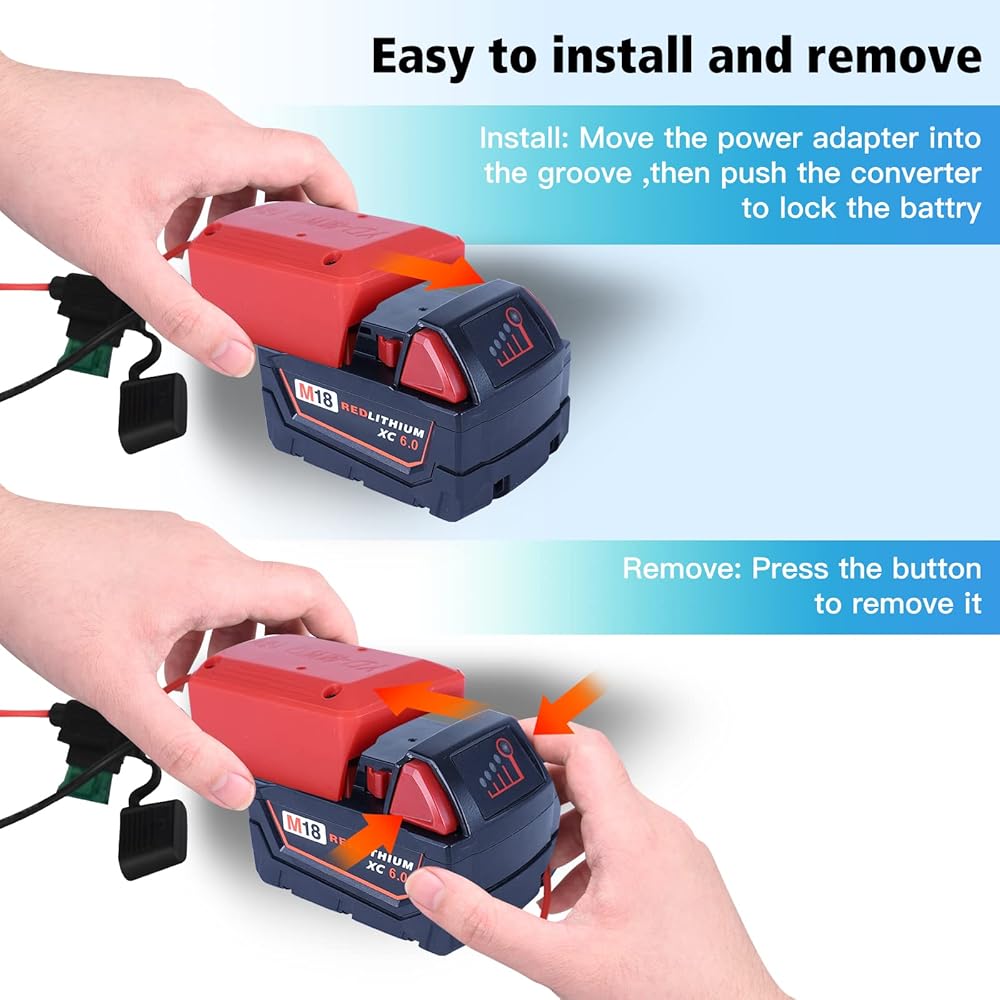 • 【تصميم احترافي】متوافق تمامًا مع بطارية Milwaukee M18 سلسلة 18 فولت 48-11-1815 / 48-11-1820 / 48-11-1828 / 48-11-1840 / 48-11-1850 / 48-11-1860 والمزيد. موصل محول البطارية الخاص بنا مصنوع بشكل جيد، ويناسب بطاريتك بشكل مريح، ويمكنه تركيب البطارية وقفلها بسهولة. مصنوع من بلاستيك ABS المتين، مقاوم للحرارة وليس من السهل أن يتآكل، مثالي للاستخدام الداخلي والخارجي.