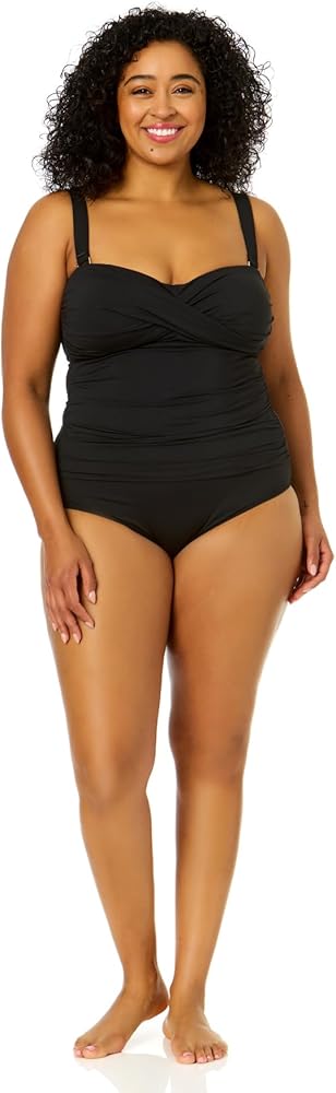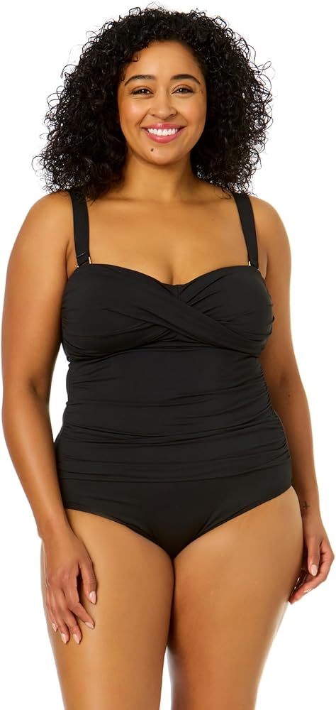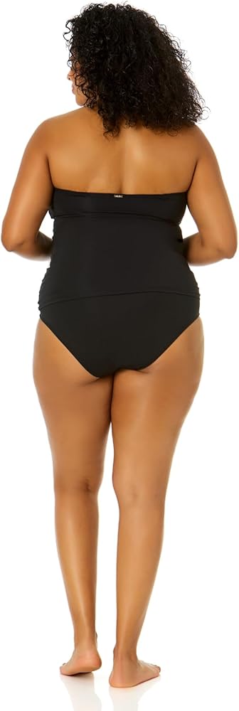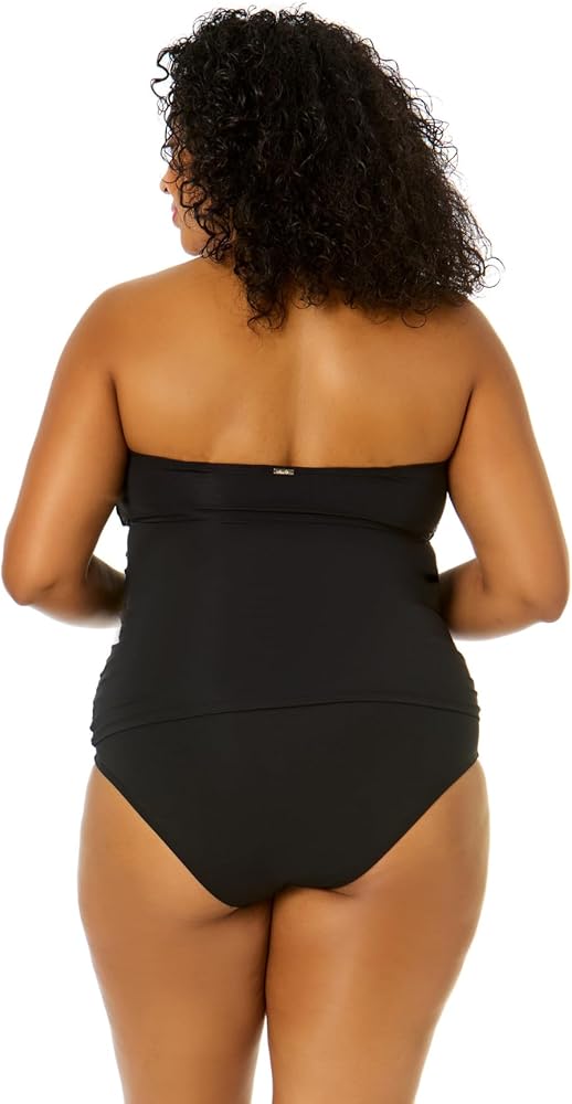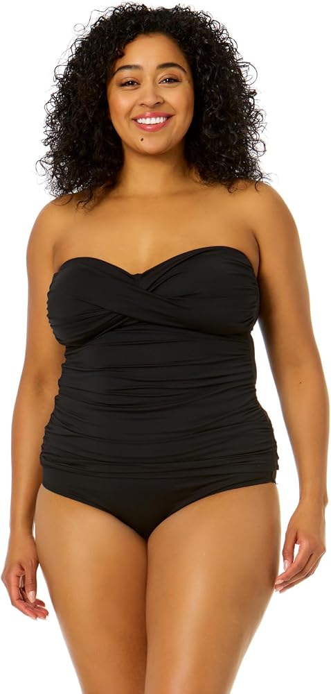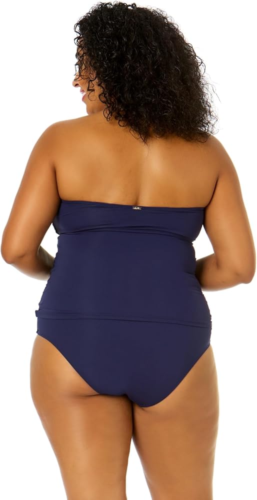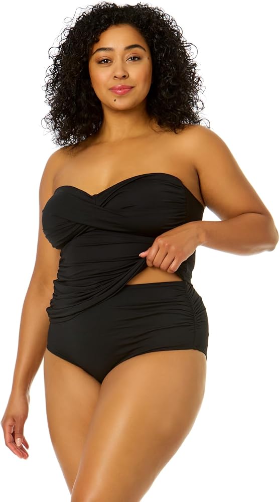 Anne Cole Plus Solids Twist Front Shirred Bandeau Tankini Swim Top