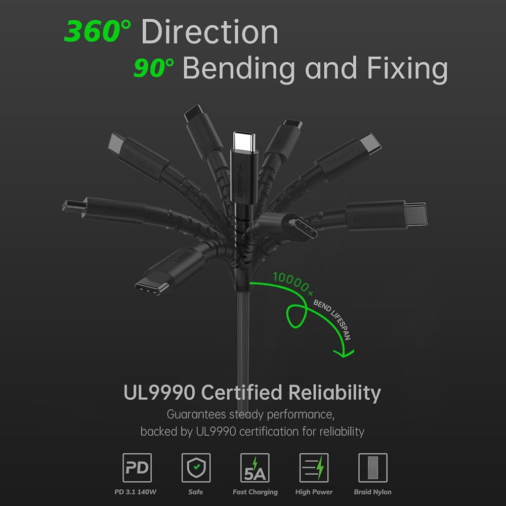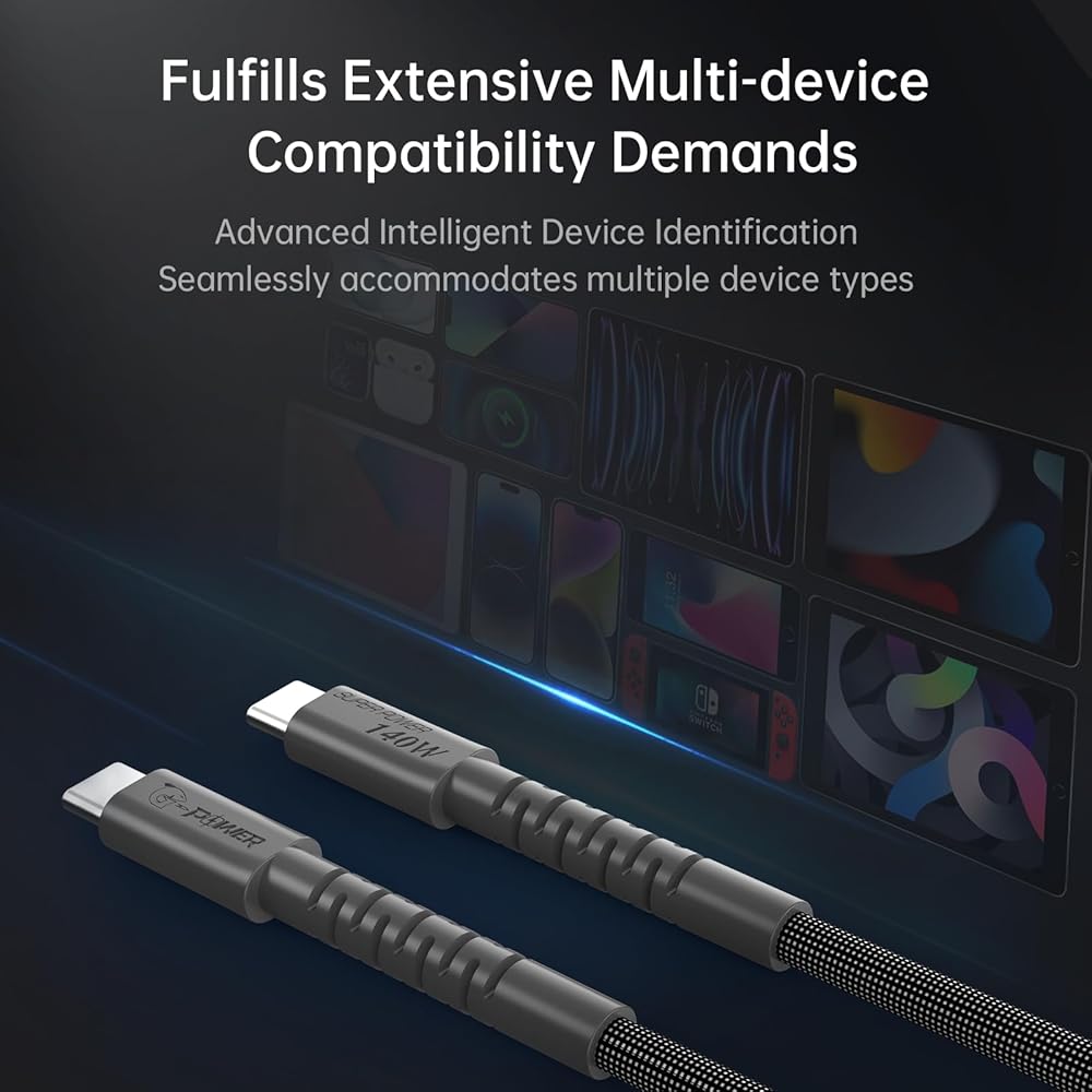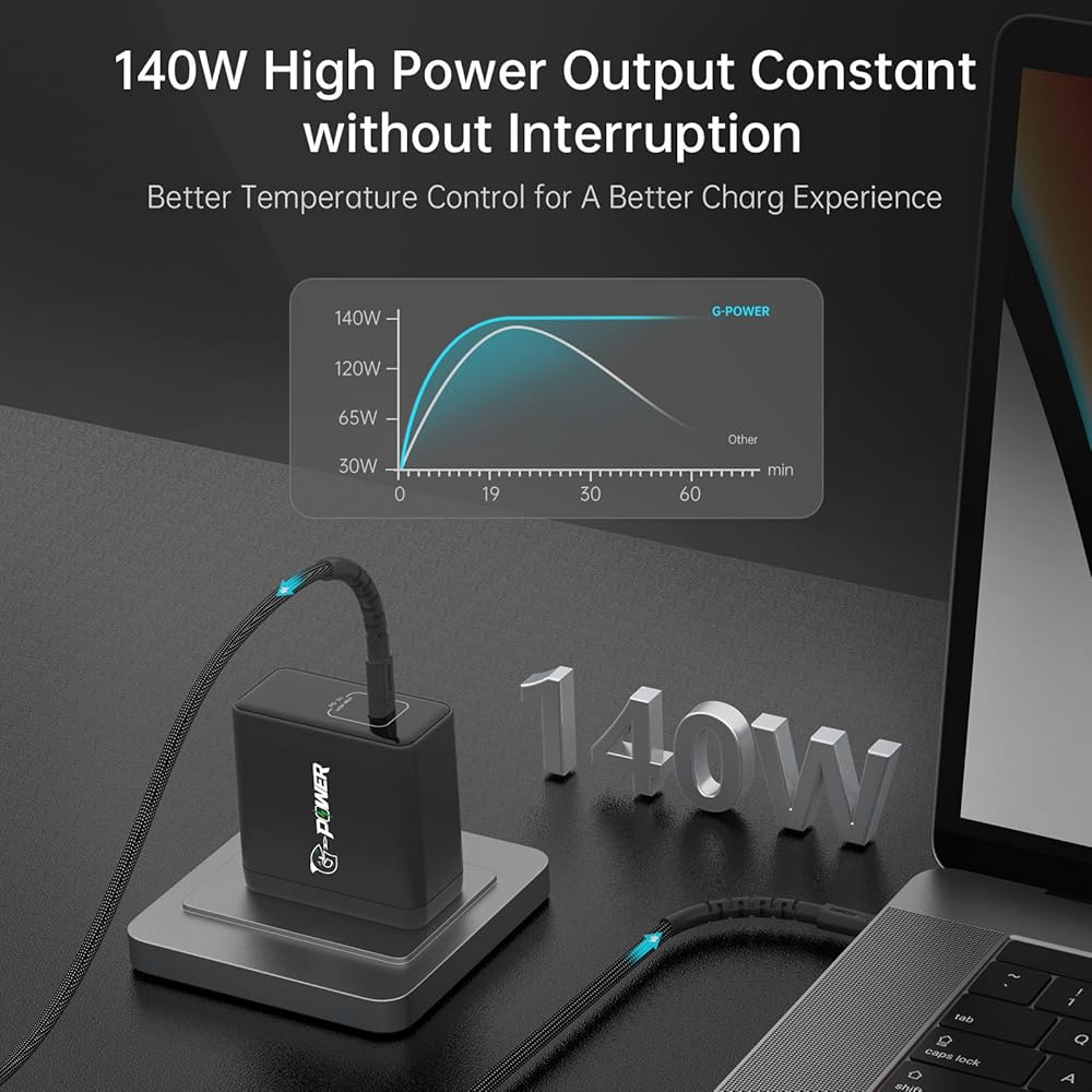 🚀 اشحن جهاز MacBook الخاص بك بسرعة: مع الحد الأقصى للإخراج 140 واط وتوافق USB Power Delivery 3.1، اشحن جهاز MacBook Pro 16ʺ في أقل من 1.5 ساعة. استمتع بأقصى سرعة شحن لأي جهاز MacBook في أي مكان وفي أي وقت.