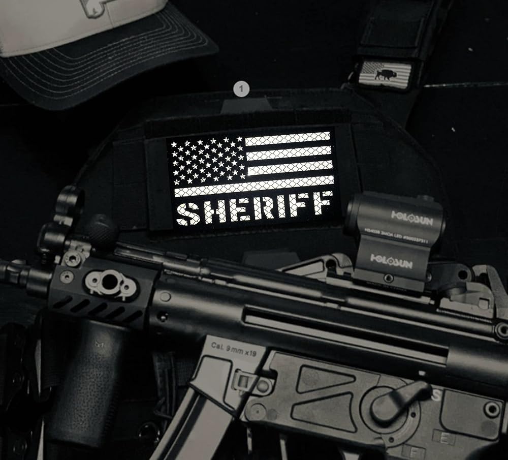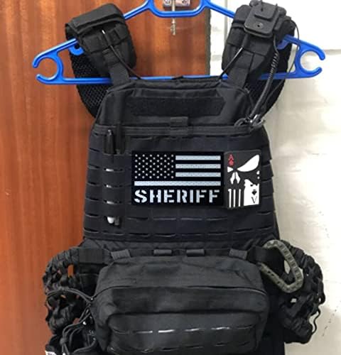 3x5 كبير عاكس شريف التصحيح الولايات المتحدة العلم مع هوك الخلفي لخدمة تسخير التكتيكية سترة طوق هوك السحابة دعم