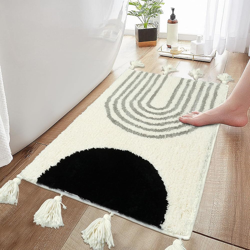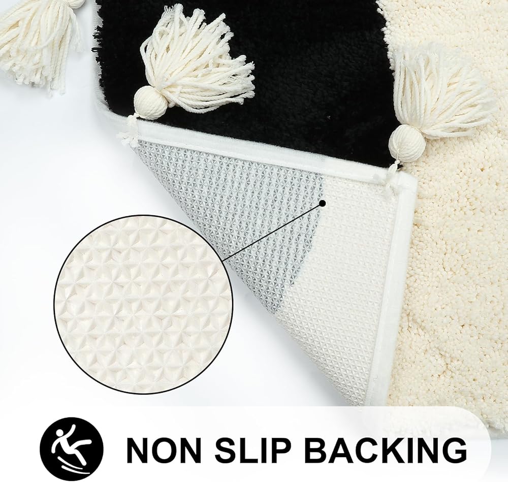 تصميم عالي الجودة مانع للانزلاق - تتميز سجادة الحمام الخاصة بنا بظهر مطاطي مطور من المطاط اللدن حراريًا، مما يضمن متانة استثنائية مقارنة بالمواد الأخرى. الجزء الخلفي المضاد للانزلاق يحافظ على السجادة في مكانها بشكل آمن، مما يمنع أي انزلاق على أرضيات الحمام الزلقة. ملحوظة: ضع السجادة على أرضية نظيفة وجافة وناعمة فقط.