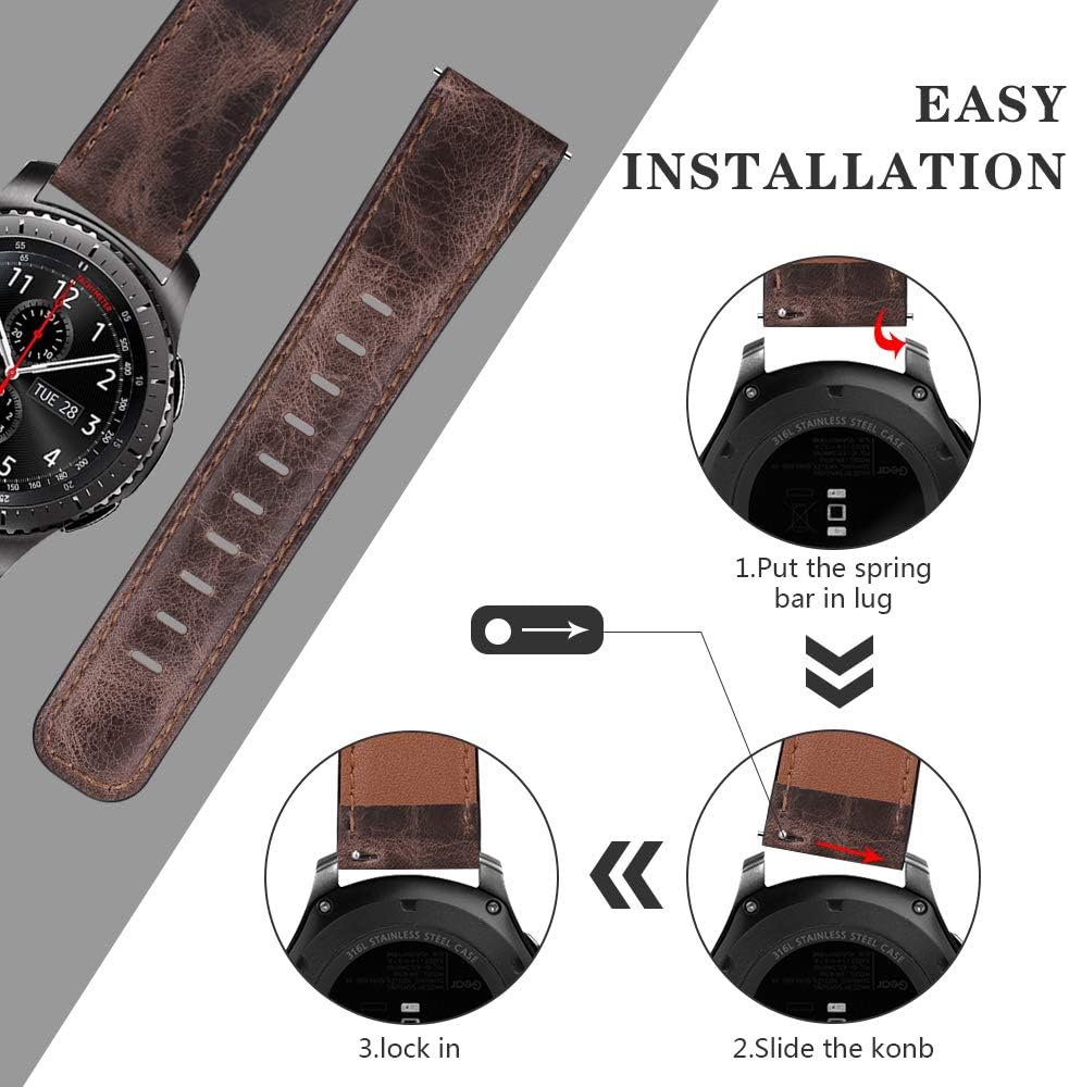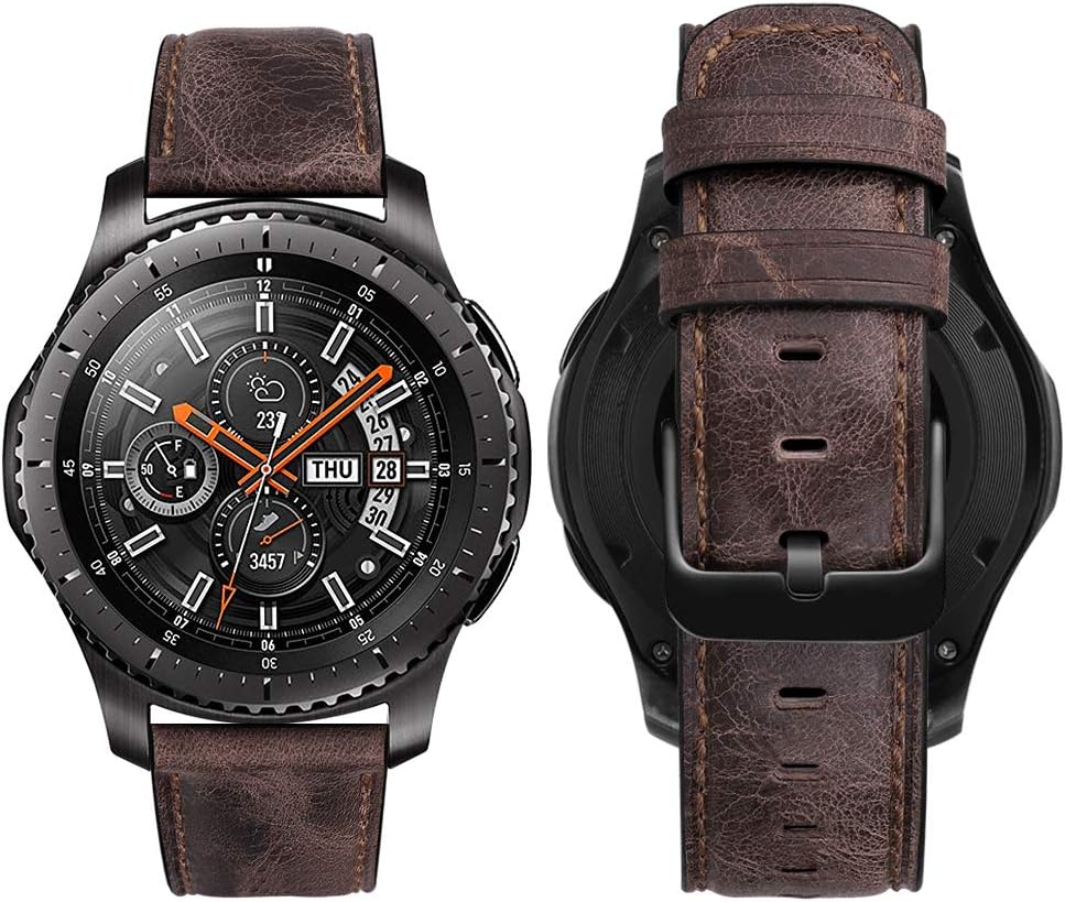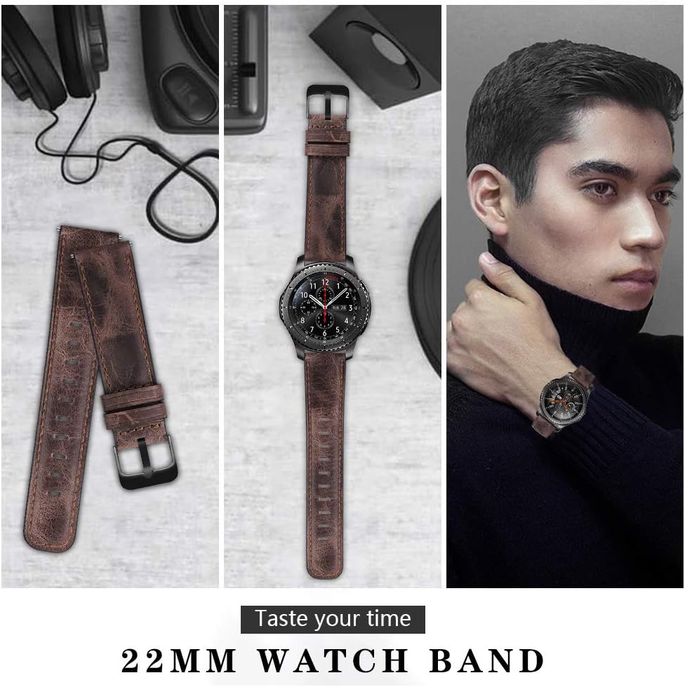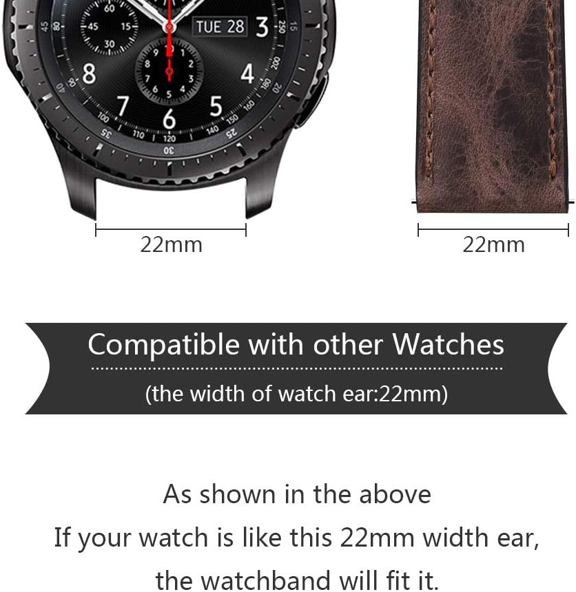 • ⌚ Universal Compatibility: 22mm Leather band with black clasp works for Samsung Galaxy Watch 3 45mm/Galaxy Watch 46mm(SM-R800/SM-R805)/Gear S3 Frontier (SM-R760)/Gear S3 Classic(SM-R770),Huawei Watch 2 Classic/GT/GT 2 46mm/GT Active/Elegant/GT 2e/GT2 Pro/GT3/GT 3 Pro,Ticwatch 1/Pro/E2/S2,Huami Pace/Stratos/2/3/GTR 47mm,Q Founder 2.0/Men's Gen 3 Explorist/Gen 4 Q Explorist HR/Gen 5 Carlyle/Julianna/Garrett,Garmin vívoactive 4 45mm/Venu 2 etc.