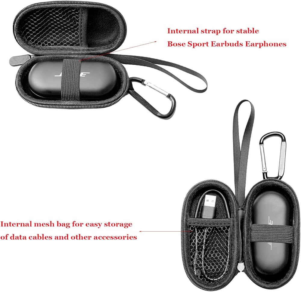 حقيبة حمل صلبة لسماعات أذن Bose الرياضية، متوافقة مع سماعات أذن Bose الرياضية، سماعات أذن لاسلكية حقيقية بخاصية إلغاء الضوضاء، حافظة واقية محمولة من مادة EVA مع جيب ملحقات شبكية (جراب فقط)