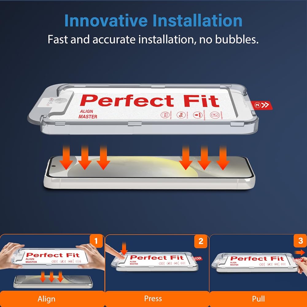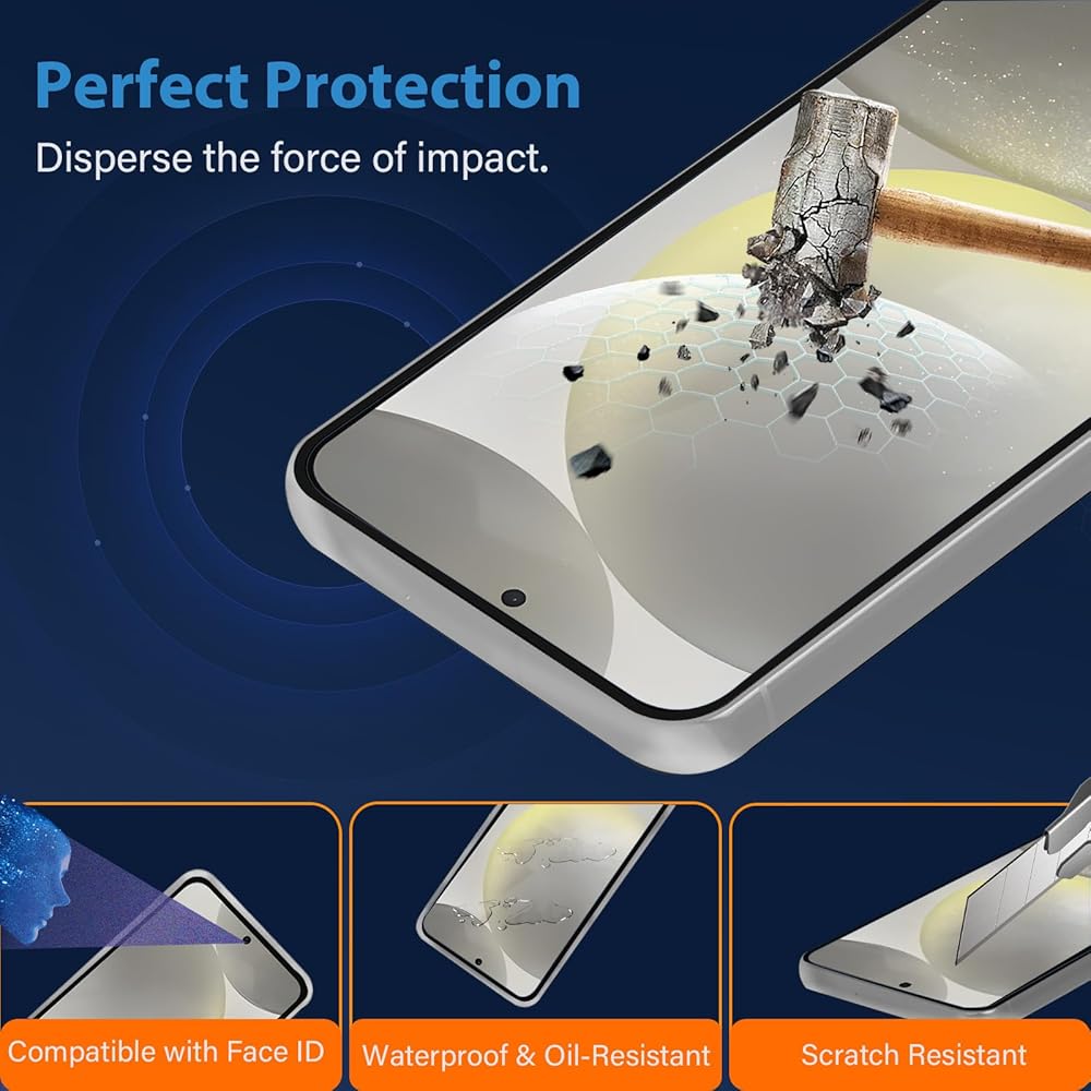 حماية مثالية: مصنوع من زجاج مقوى مقطوع بالليزر بدقة 9H لحماية قوية، ويمكنه حماية شاشتك بشكل فعال من الخدوش غير الضرورية ومنع شاشتك من الكسر تحت تأثير شديد. زوايا مستديرة 2.5D مع حواف ناعمة وشاشة Galaxy S24 plus المنحنية تمتزج بشكل مثالي، كما لو أنها غير موجودة. متوافق مع معظم حافظات الهاتف.