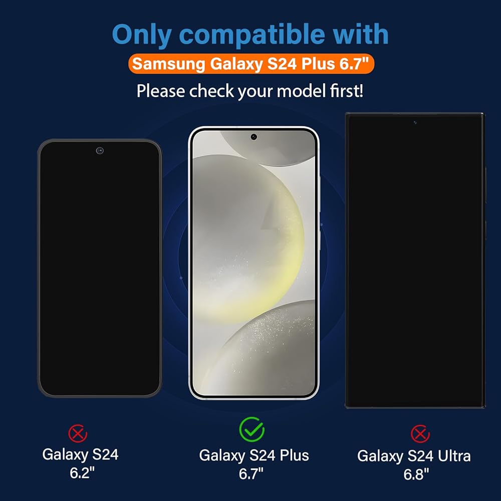 التوافق: مصمم خصيصًا لهاتف Samsung Galaxy S24 Plus، وغير مناسب لطرز الهواتف الأخرى. يرجى التحقق من طراز هاتفك قبل الشراء. ما يتضمن: قطعتان من واقي شاشة Samsung Galaxy S24 Plus للخصوصية، 2 × مجموعة EZ للتركيب، 2 × مجموعة تنظيف.