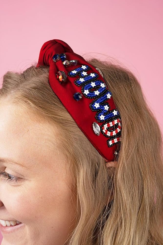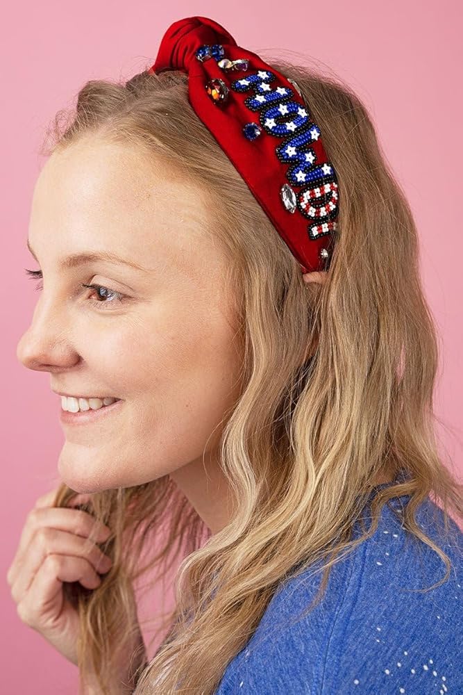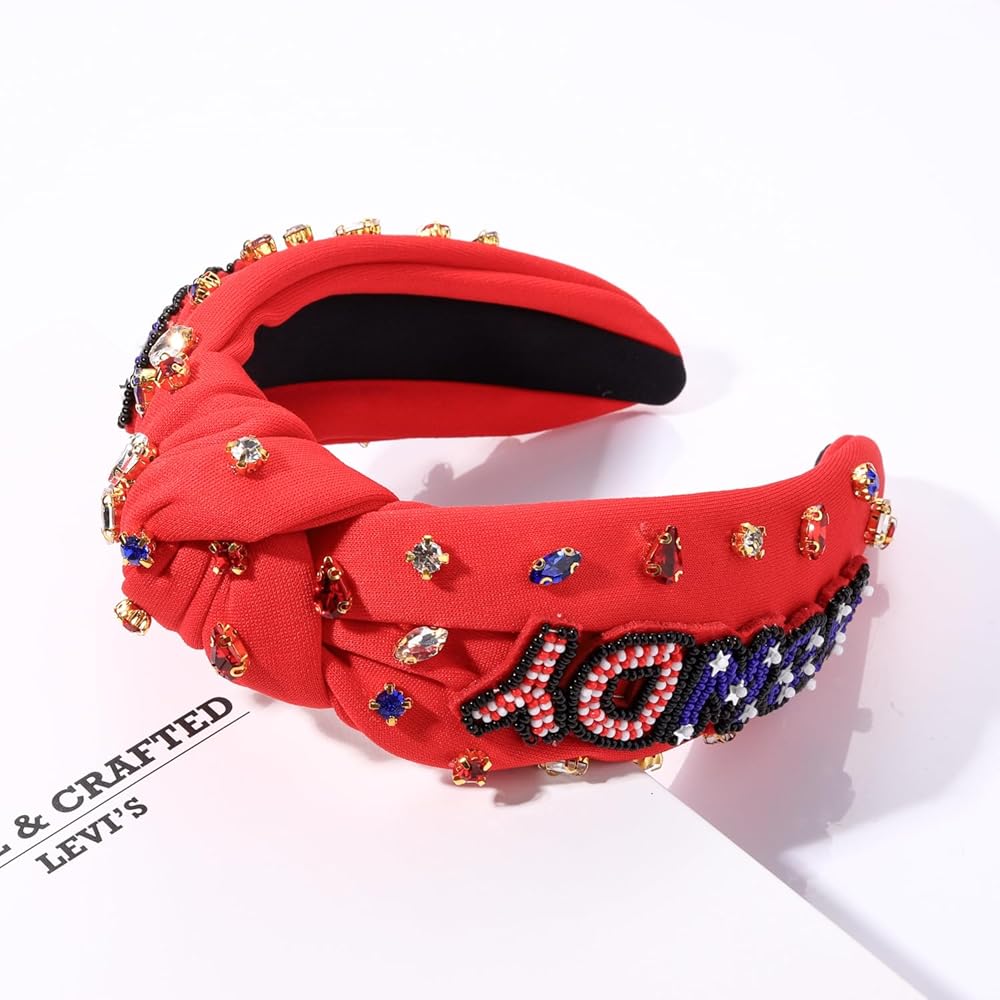 ☆4 th of July Headband -Lookin' for a way to add some patriotic pizzazz to your style? The All American Girl Headband is the perfect accessory to show off your American pride. This eye-catching handmade beaded headband features iconic red, white, and blue colors seed beads stars and top knot embellished with sparkling crystal beads for a girly, glamorous pop of patriotism.Its unique star-studded pattern will make you stand out from the crowd, will make you shine like the star you are!