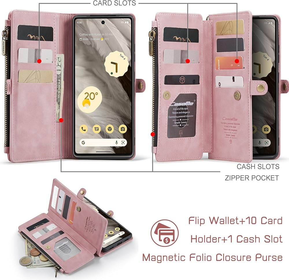 4. 【فتحات للبطاقات وسحاب ومعصم】: تشتمل حافظة محفظة Google Pixel 7A على 10 حامل بطاقات + 1 حقيبة بسحاب + 1 فتحة للنقود، واحتفظ ببطاقة هويتك وبطاقات الائتمان ورخصة القيادة والفواتير والعملات المعدنية وقليل من النقود دون مشاكل. تم اختبار السحاب أكثر من 5000 مرة؛ مع حزام حبل قابل للإزالة، مما يوفر طريقة إمساك اختيارية.