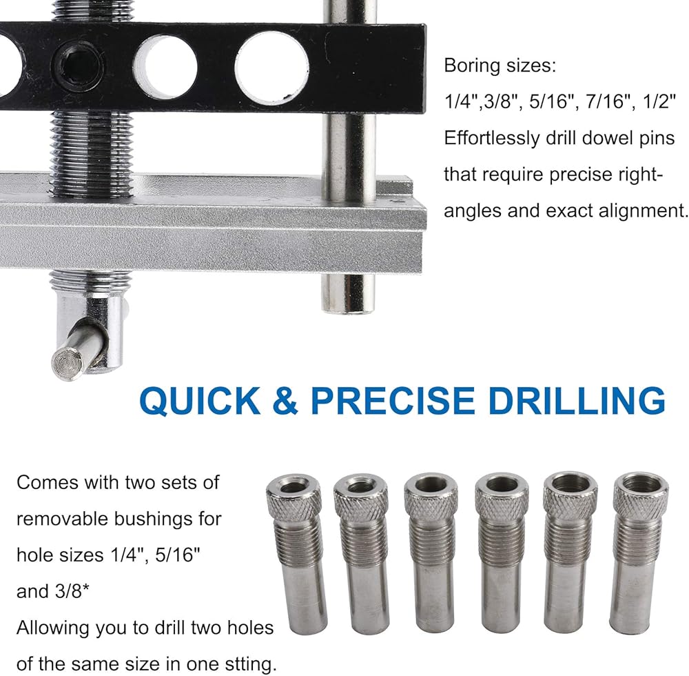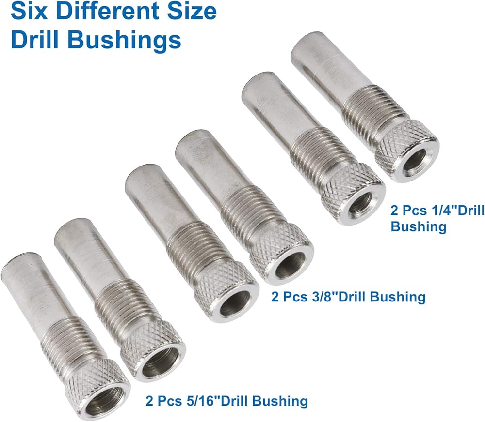 5 قطع حجم المثقاب القياسي: 1/4 بوصة، 3/8 بوصة، 5/16 بوصة، 7/16 بوصة، و1/2 بوصة