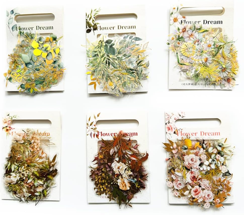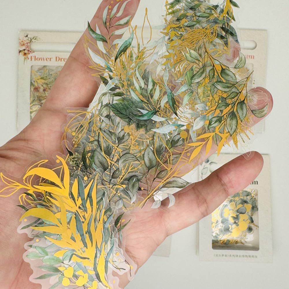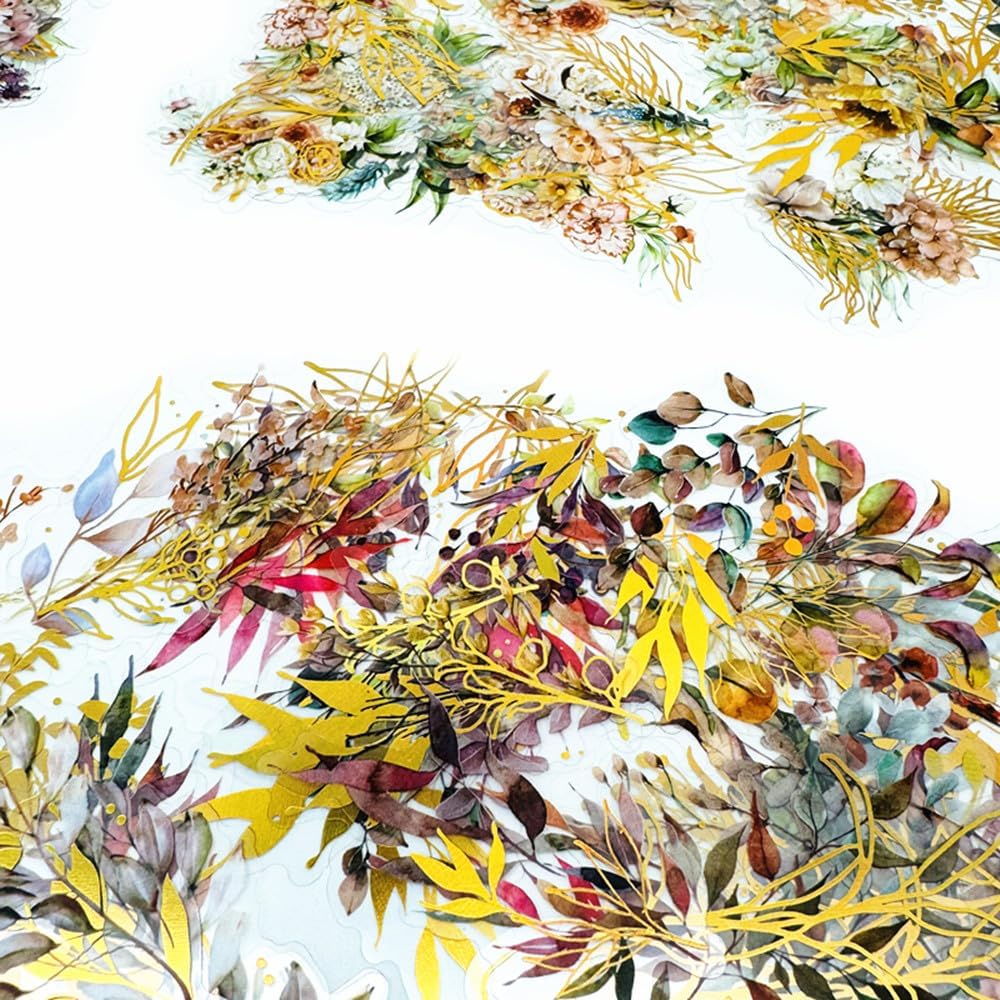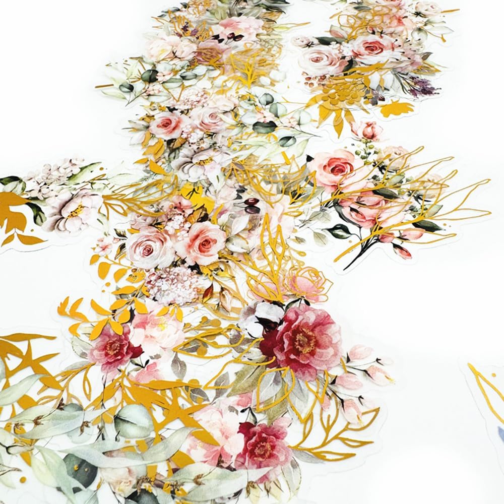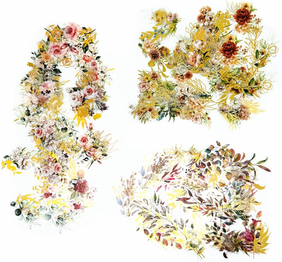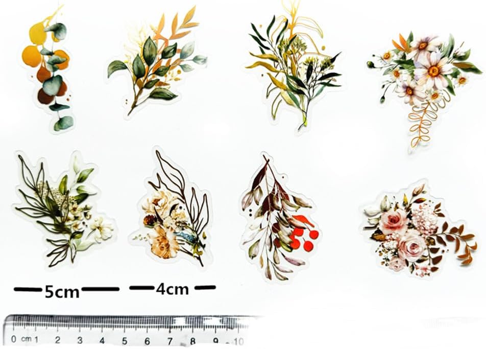 Package contains 240pcs gold stickers per set.(120pattern,two of each kind,included eucalyptus,rose,leaf,daisy,bouquet flower theme.)