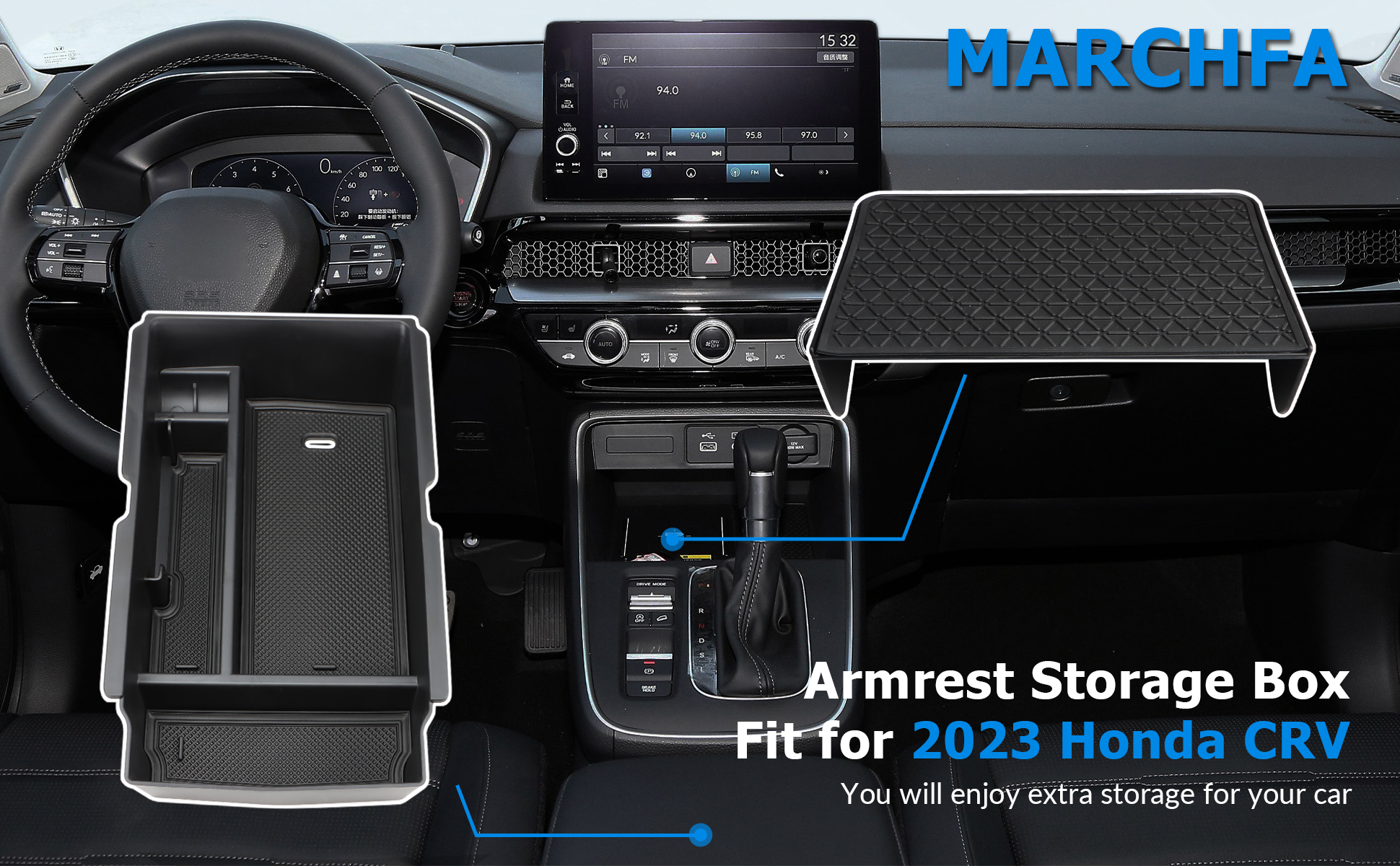 علبة وحدة التحكم المركزية ومنظم مسند الذراع من MARCHFA متوافق مع 2023 2024 2025 Honda CRV CR-V ملحقات صندوق تخزين وحدة التحكم (صينية وحدة التحكم + منظم مسند الذراع)