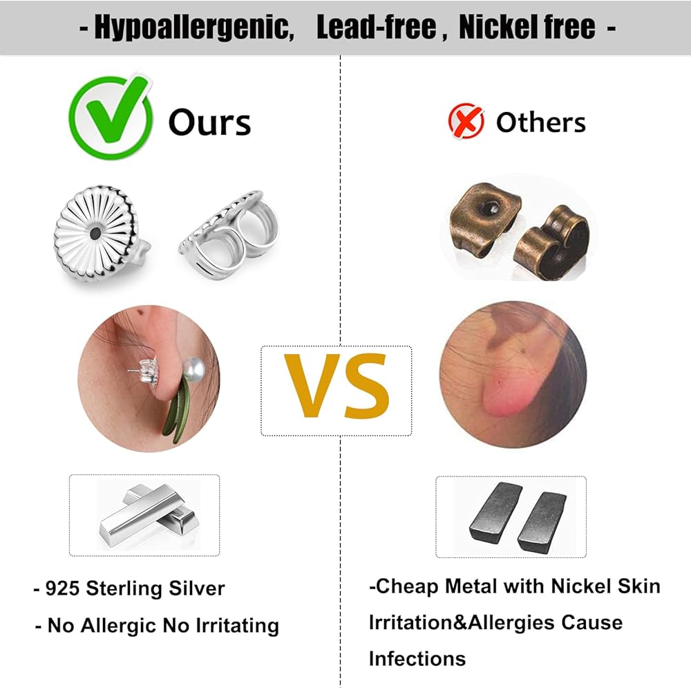 Safe Material:The earring lifters backs made of 925 sterling silver,it's strong oxidation resistance, not easy to allergy, fade or wear,hypoallergenic,keep durable.