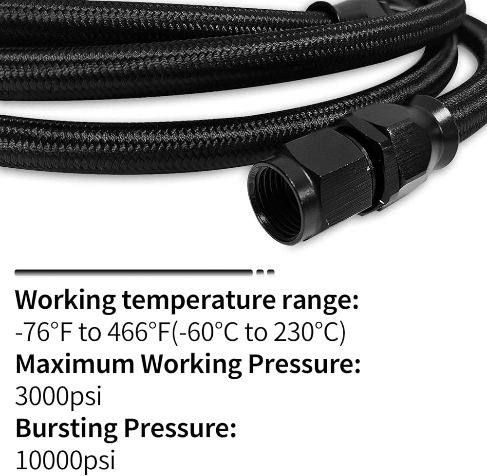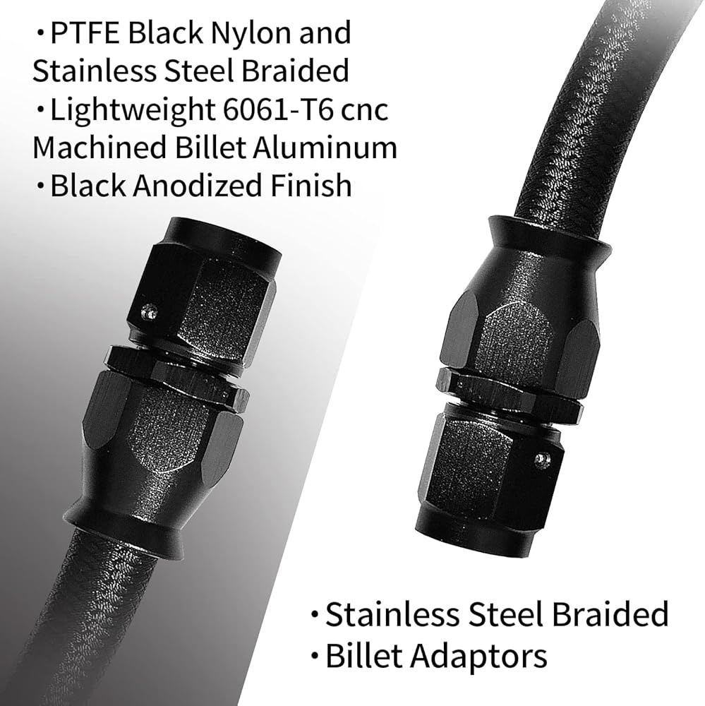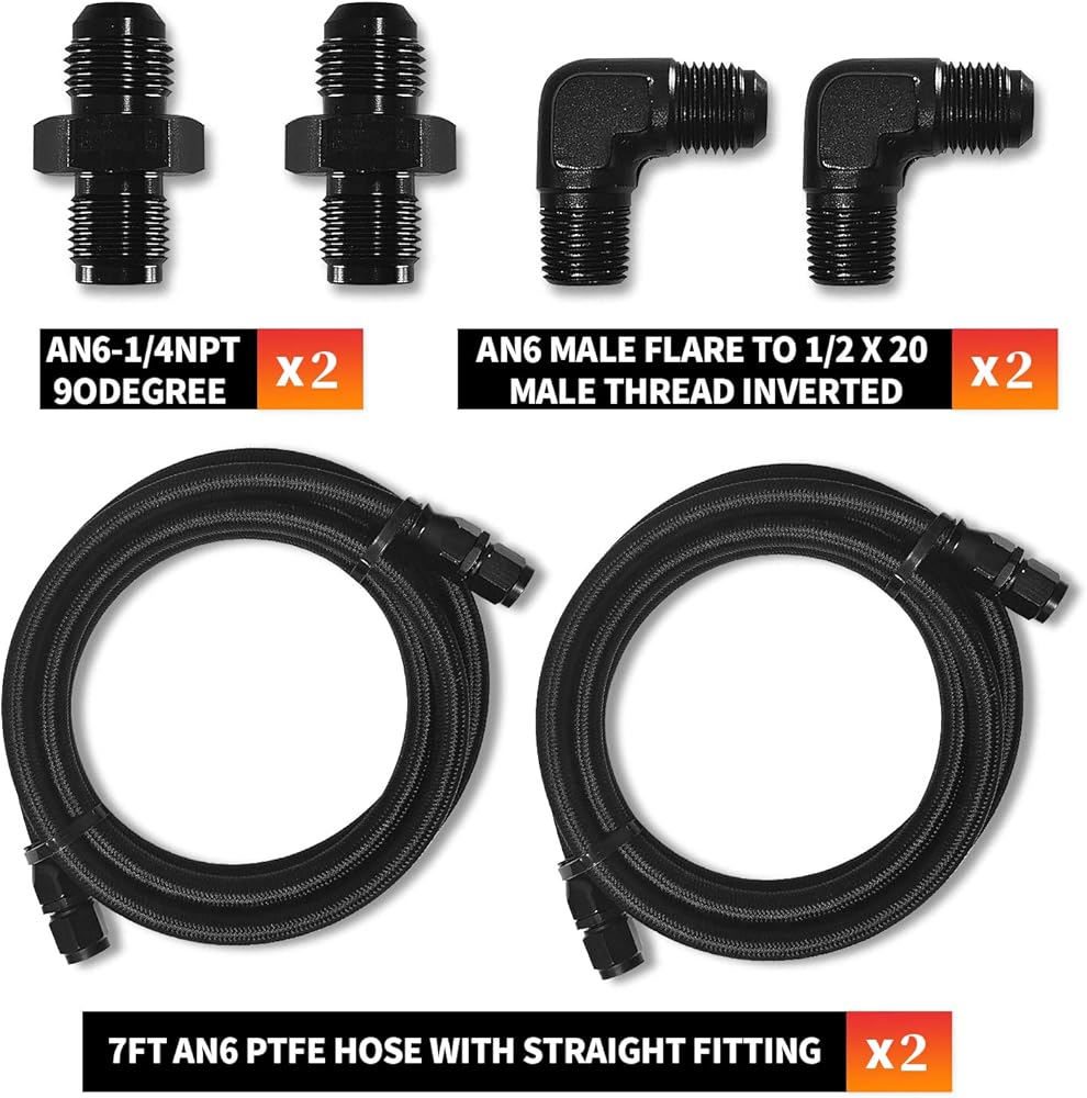 【تتضمن العبوة】: خرطوم PTFE AN6 بطول 7 أقدام برأس مستقيم *2، تركيب AN6 ذكر إلى 1/2 × 20 ذكر مقلوب *2، تركيب AN6-1/4 NPT 90 درجة *2.