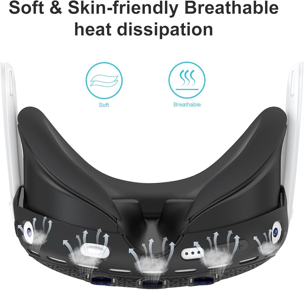 [تبديد فعال للحرارة]: غطاء السيليكون هذا لملحقات Quest 3 مصنوع من معالجة تقنية متقدمة لضمان متانته، مع تصميم فتحات تهوية دقيقة. يضمن تبديد الحرارة دون المساس بتجربة الألعاب الخاصة بك.