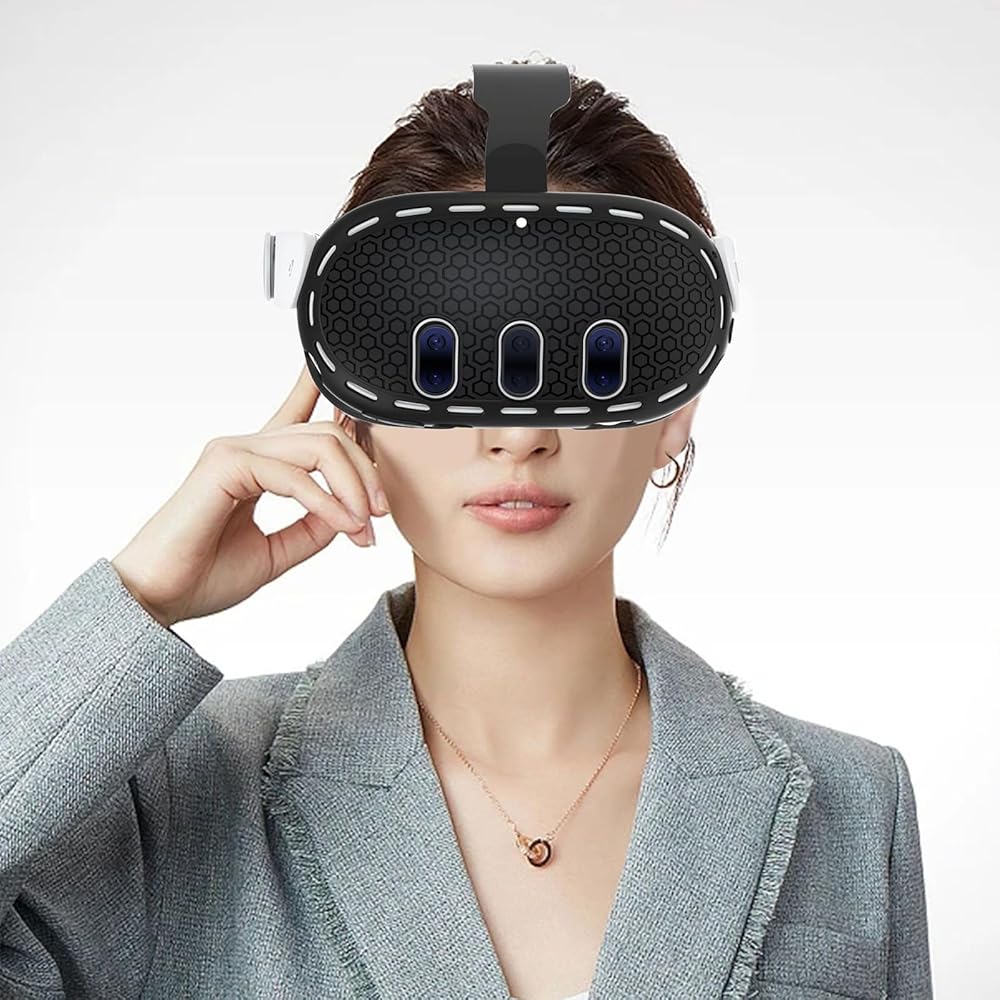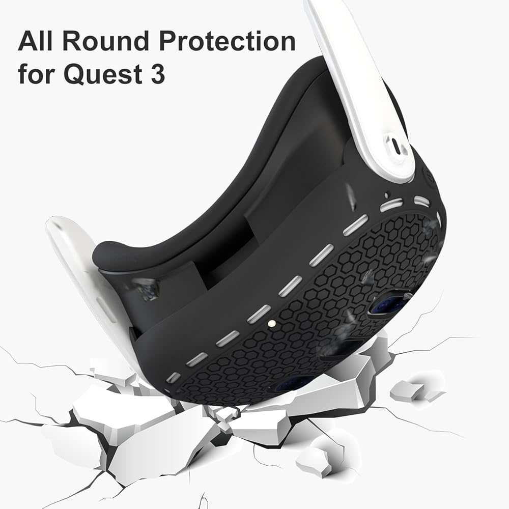 [حماية شاملة]: مصنوع من السيليكون يوفر حماية رائعة وشاملة لسماعات الرأس Quest 3 VR، غطاء السيليكون يتناسب بإحكام مع سماعة الرأس VR، ويجعل الجهاز مقاومًا للسقوط والغبار والخدش وسهل التنظيف وفعال في منع التلف العرضي للجهاز لعمر أطول.