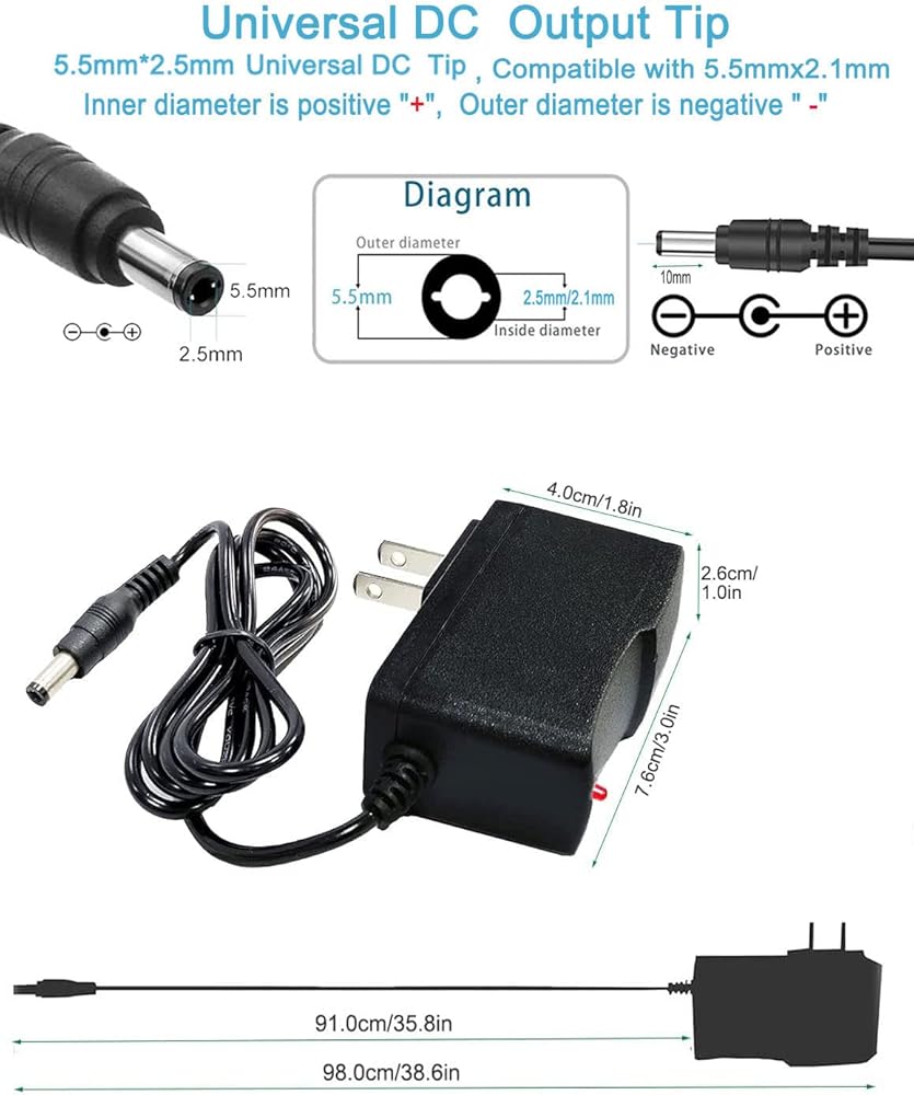 الإدخال: تيار متردد 100~240 فولت، 50/60 هرتز؛ الإخراج: تيار مستمر 3 فولت 1 أمبير 3 واط (كحد أقصى). القطبية: مركز إيجابي (+). تيار الخرج هو 1 أمبير كحد أقصى، مما يعني أنه يمكن إمداده بجميع التيارات التي تقل عن 1000 مللي أمبير، مثل 200 مللي أمبير، 450 مللي أمبير، 0.5 أمبير، 0.6 أمبير، 0.85 أمبير 1 أمبير. نوصي باستخدام أقل من 80% من الحمولة الكاملة. لا تفرط!