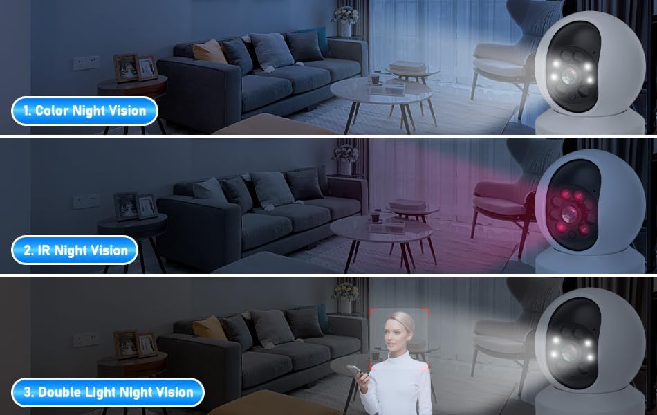 【2K 4MP HD ورؤية ليلية بالألوان الكاملة】سواء كان ذلك ليلاً أو نهارًا، يمكنها توفير جودة صورة فائقة الوضوح بدقة 4MP 2K لمشاهدة حيوانك الأليف/طفلك/كبار السن، مناسبة جدًا لمراقبة أمان المنزل أو كاميرا الكلب أو القطط، مجهزة بكاميرا 6 مصابيح بالأشعة تحت الحمراء و6 مصابيح بيضاء تمكنك من رؤية صور كاملة الألوان حتى في بيئة مظلمة تمامًا. تسجيل 7/24 ساعة، وحراسة منزلك ليلاً ونهارًا.