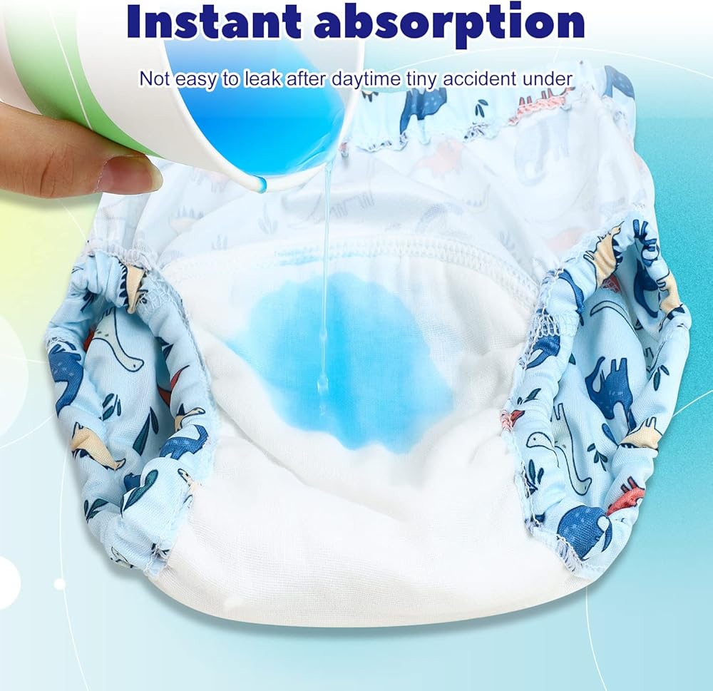【سراويل تدريب ماصة】توجد وسادات من مادة TPU في منطقة ما بين الرجلين، لذا فإن ملابس التدريب الداخلية هذه ماصة بما يكفي لالتقاط الحوادث الصغيرة ومنع التسرب. يمكن للحماية الإضافية أن تمنح الوالدين راحة البال وتجعل عملية التنظيف أسهل.