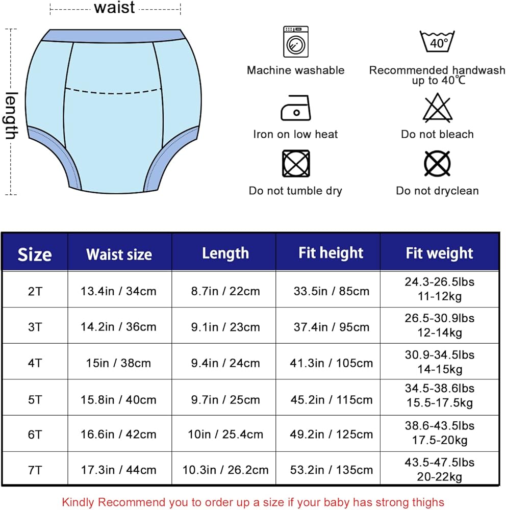 【قابلة لإعادة الاستخدام】تم تصميم الملابس الداخلية للتدريب على استخدام المرحاض للأطفال الصغار بحيث يتم غسلها وإعادة استخدامها عدة مرات، مما يوفر المال مقارنة بالخيارات التي تستخدم لمرة واحدة، والتي تعد أكثر فعالية من حيث التكلفة على المدى الطويل.