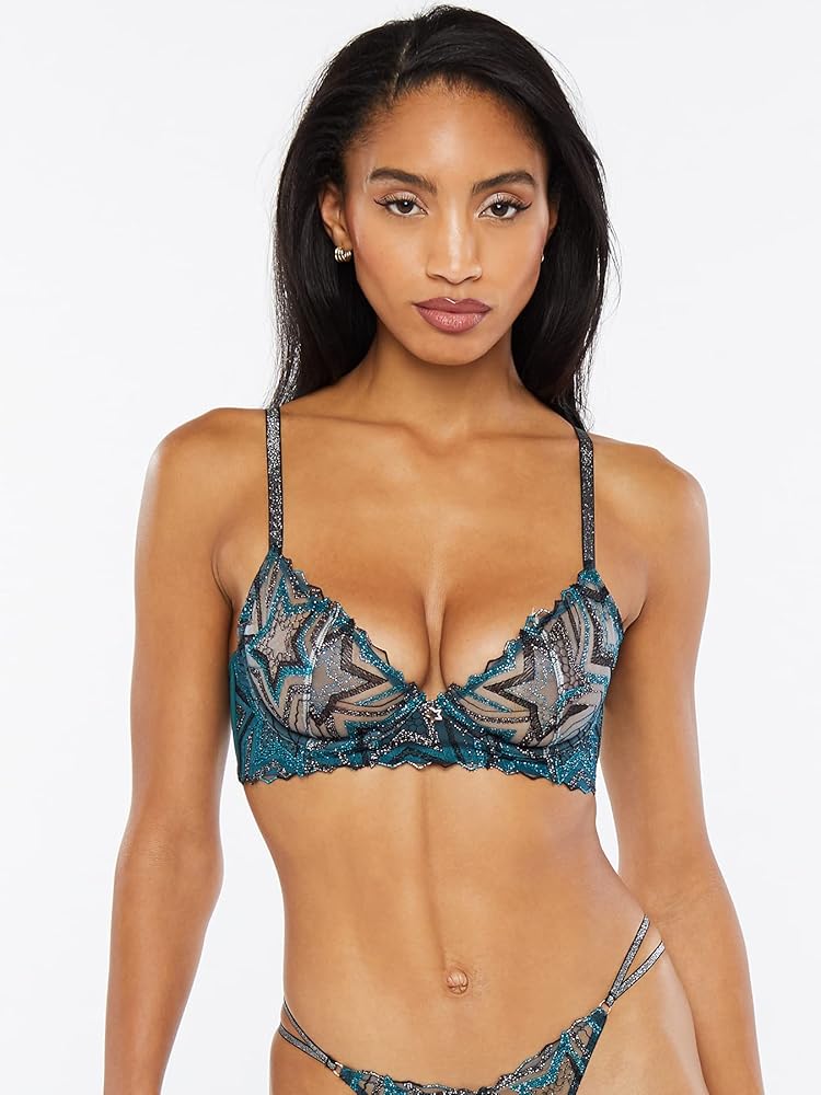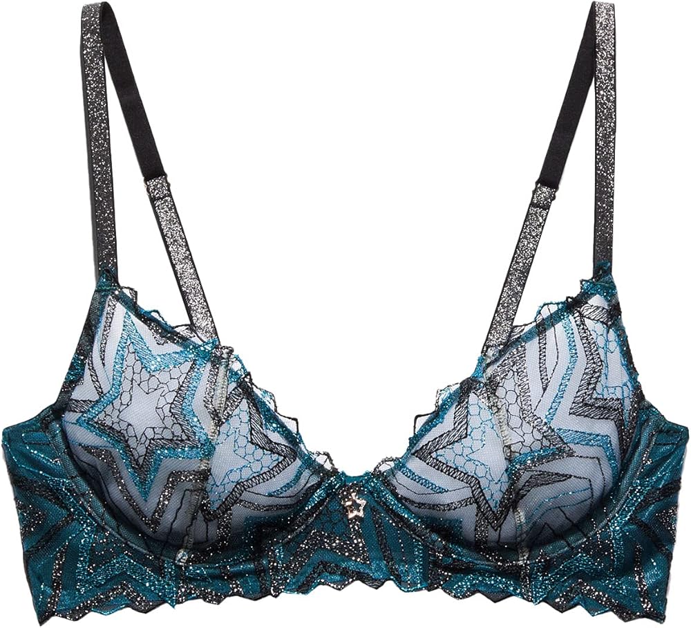 Retro disco-inspired stars define this must-have Shining Star Embroidered Unlined Demi Bra, with sheer, crystal tulle to finish the look.
