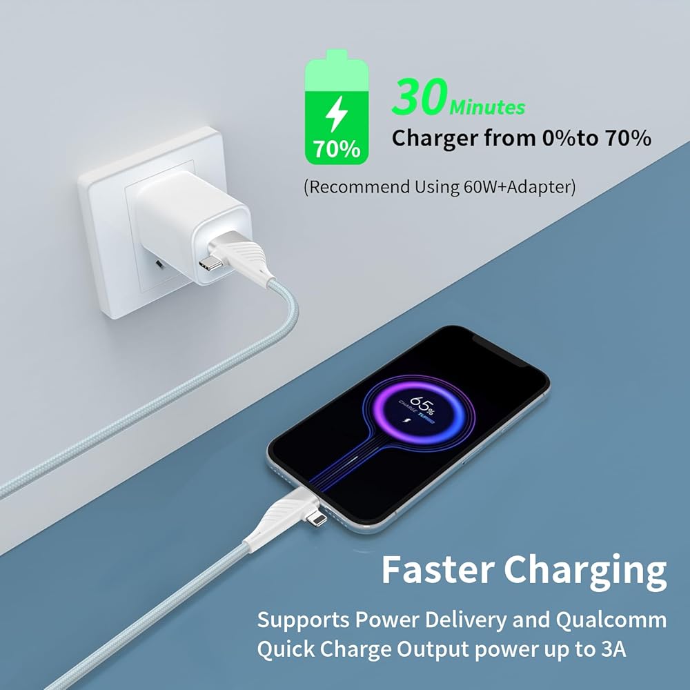 استمتع بالشحن ونقل البيانات بسرعة البرق باستخدام الكابل متعدد الاستخدامات. يدعم كابل الشحن من النوع C إلى النوع C الشحن السريع بقدرة تصل إلى 65 وات (20 فولت 3 أمبير)، بينما يدعم كابل الشحن من النوع C إلى Lightning الشحن السريع بقدرة 27 وات/ 3 أمبير. بالإضافة إلى ذلك، استمتع بنقل البيانات بسلاسة تصل إلى 480 ميجابت في الثانية، وهو مثالي لمزامنة أجهزتك أو استخدام CarPlay وAndroid Auto أثناء التنقل. سواء كنت في المنزل أو مسافرًا، فهذا الكابل هو الرفيق الذي يجب عليك اقتناؤه.