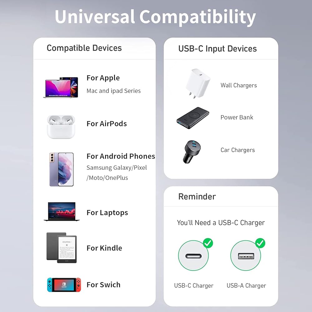 يتوافق الكابل الخاص بنا مع مجموعة واسعة من الأجهزة، مما يجعله الهدية المثالية للأصدقاء والعائلة. بدءًا من أحدث موديلات iPhone مثل سلسلة iPhone 15 وأجهزة Samsung Galaxy وMacBook Air/Pro وiPad Pro وLG وGoogle Pixel وNexus وحتى Nintendo Switch - يدعم هذا الكابل جميعها