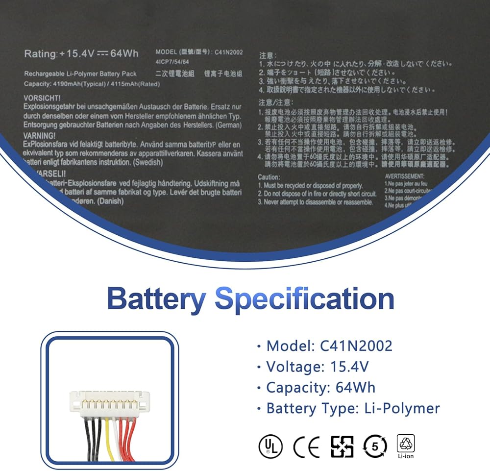 🔋 【استبدال رقم الجزء 】 مناسب لـ C41N2002 0B200-03770100 4ICP7/54/64.