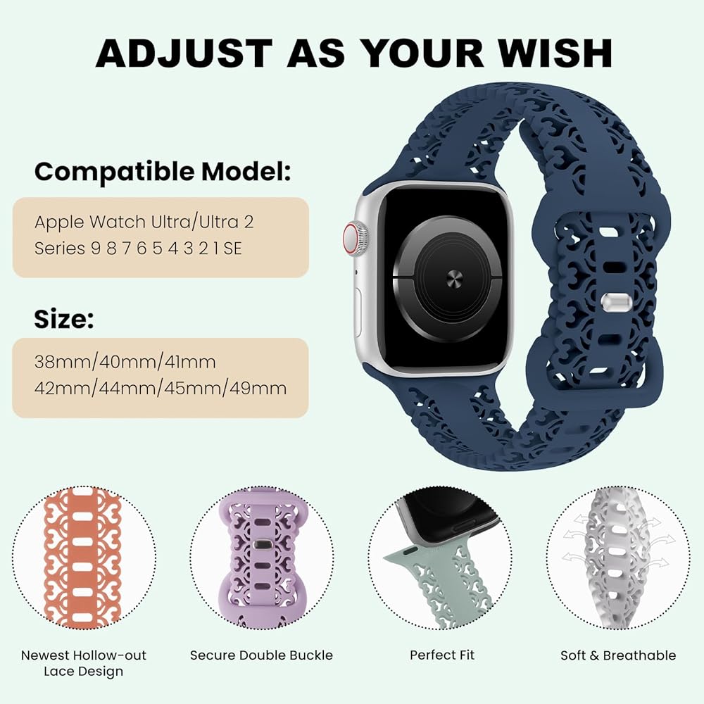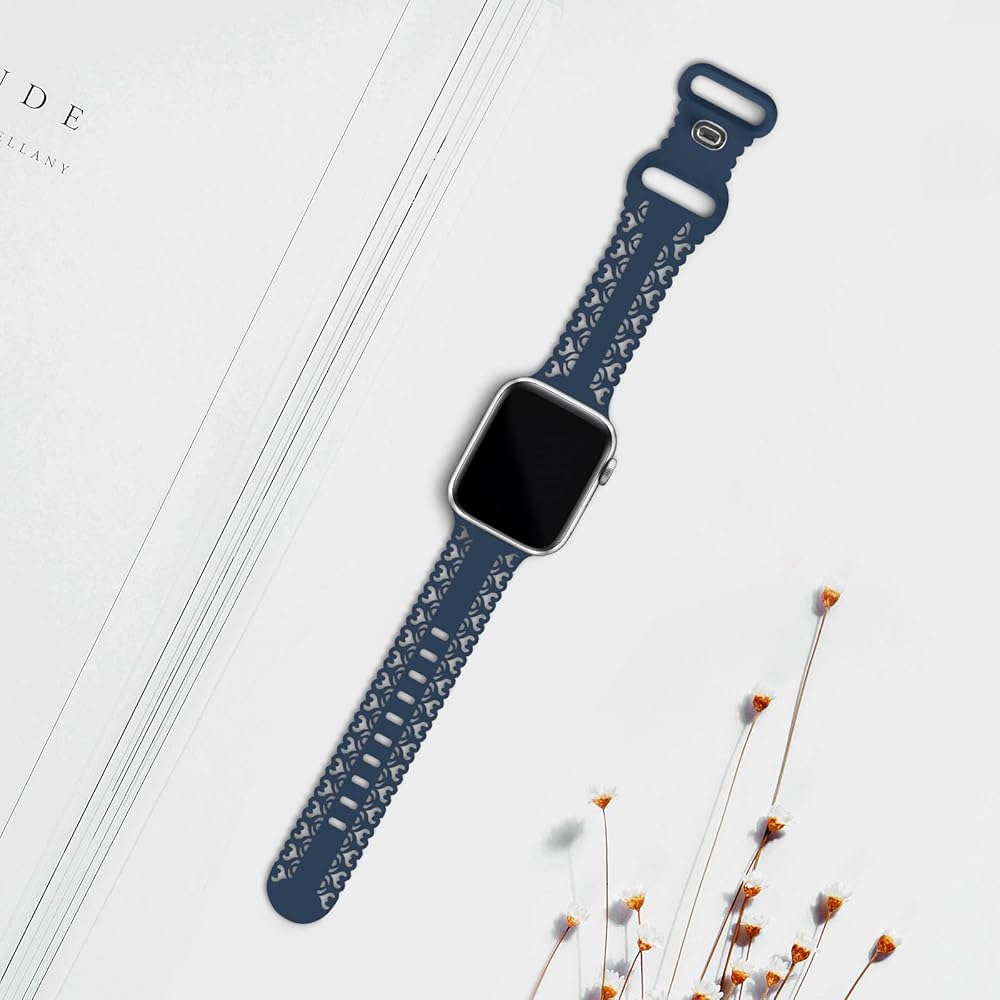【نموذج متوافق】تصميم مجوف لساعة Apple من السيليكون الدانتيل لساعة iWatch Ultra/Ultra 2 38 مم 40 مم 41 مم 42 مم 44 مم 45 مم 49 مم السلسلة 9، السلسلة 8، السلسلة 7، السلسلة 6، السلسلة 5، السلسلة 4، السلسلة 3، السلسلة 2 ، السلسلة 1، السلسلة SE.