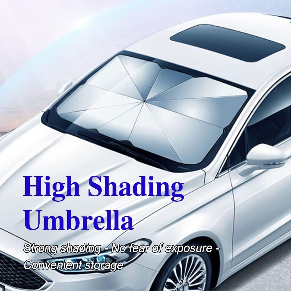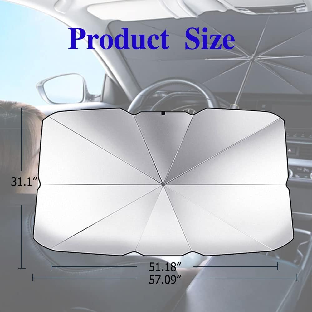 [Widely Use]: The size is 57*31 inches. The windshield sunshade is applicable to most vehicles,such as SUV, MPV, hatchback, etc. (Before purchasing,please measure the size of your front windshield to ensure that the front windshield umbrella is suitable for your car)