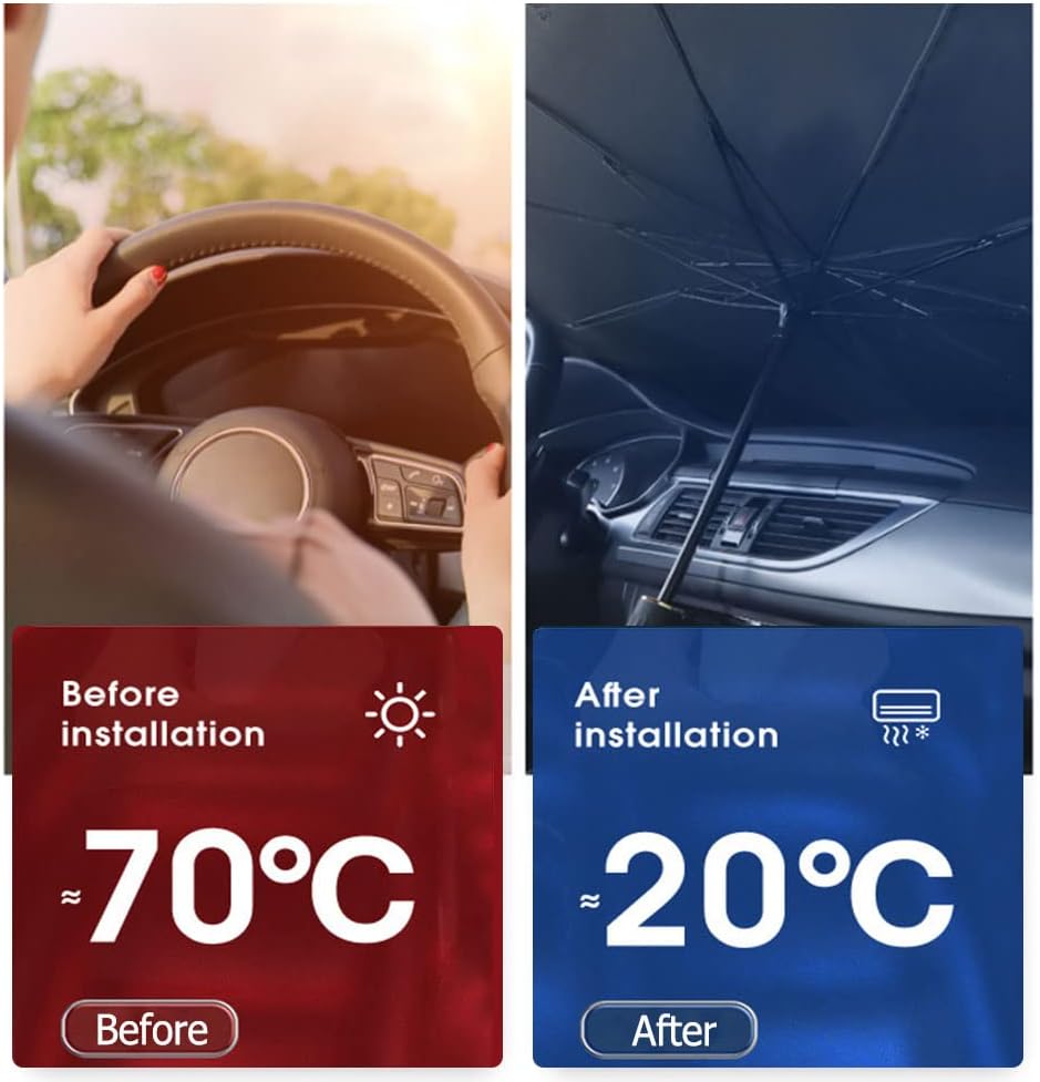 [Foldable Umbrella Feature]:Not Only Effectively maintain your car interior temperature to keep your vehicle stay cool. also can prevents the dashboard and upholstery from fade and cracks due to sun exposure.