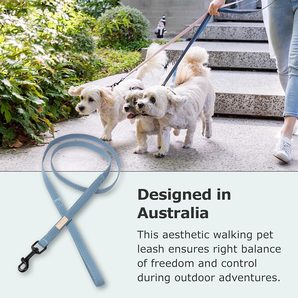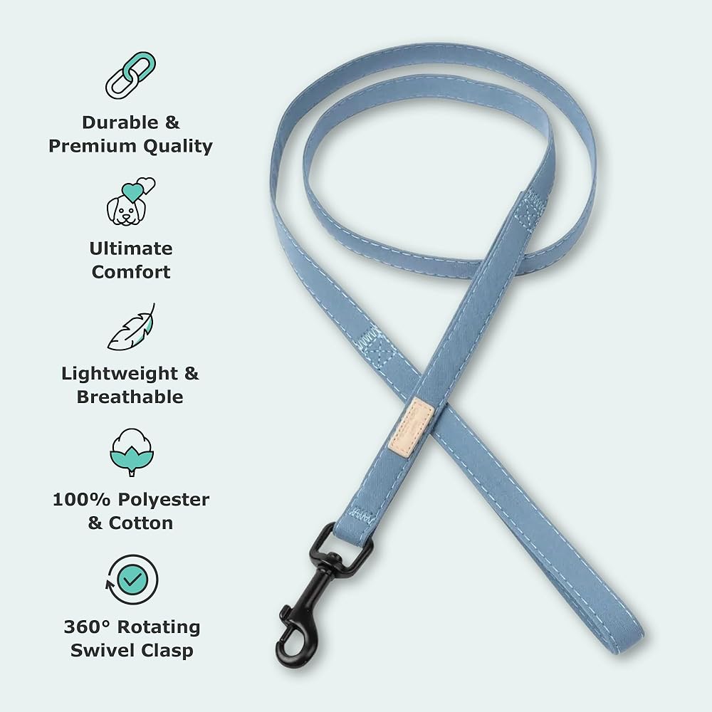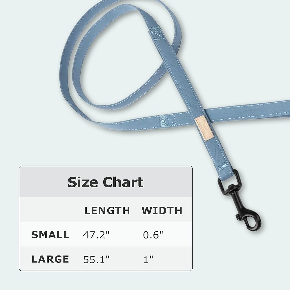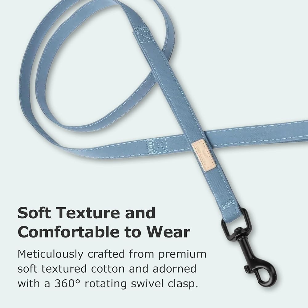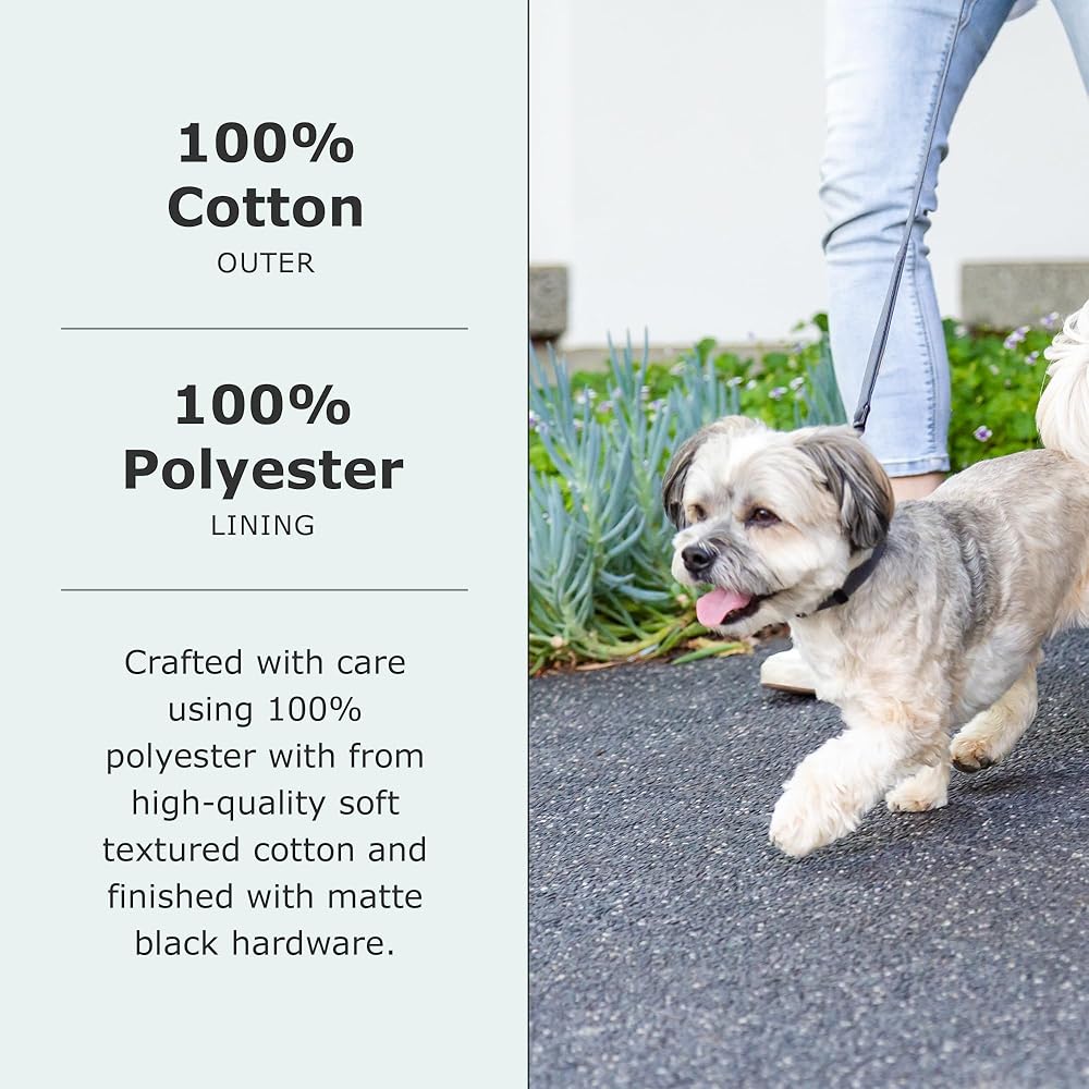 أنسجة جميلة وناعمة: مصنوع من القطن الناعم الفاخر ومزين بأجزاء صلبة سوداء غير لامعة، يتفوق مقود الحيوانات الأليفة هذا على إكسسوارات الحيوانات الأليفة التقليدية، ويوفر مزيجًا فريدًا من الجمال والراحة. كما أن المشبك الدوار بزاوية 360 درجة يجعل تجربة المشي أسهل وأكثر متعة.