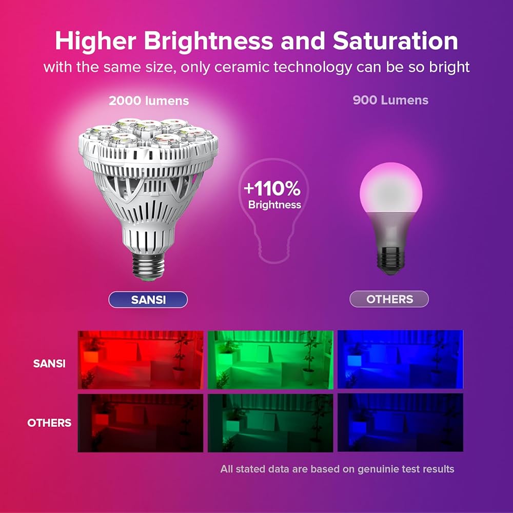 فائقة السطوع وخافتة: بالمقارنة مع مصابيح LED الأخرى، يمكن أن توفر لمبة الإضاءة الملونة من SANSI 1800 لومن باستخدام 18 وات فقط من الطاقة، أي ما يعادل المصابيح المتوهجة 120 وات، مما يوفر ما يصل إلى 90% من الكهرباء. تعديل السطوع بأربعة مستويات يمكن أن يلبي احتياجات العملاء في سيناريوهات مختلفة.