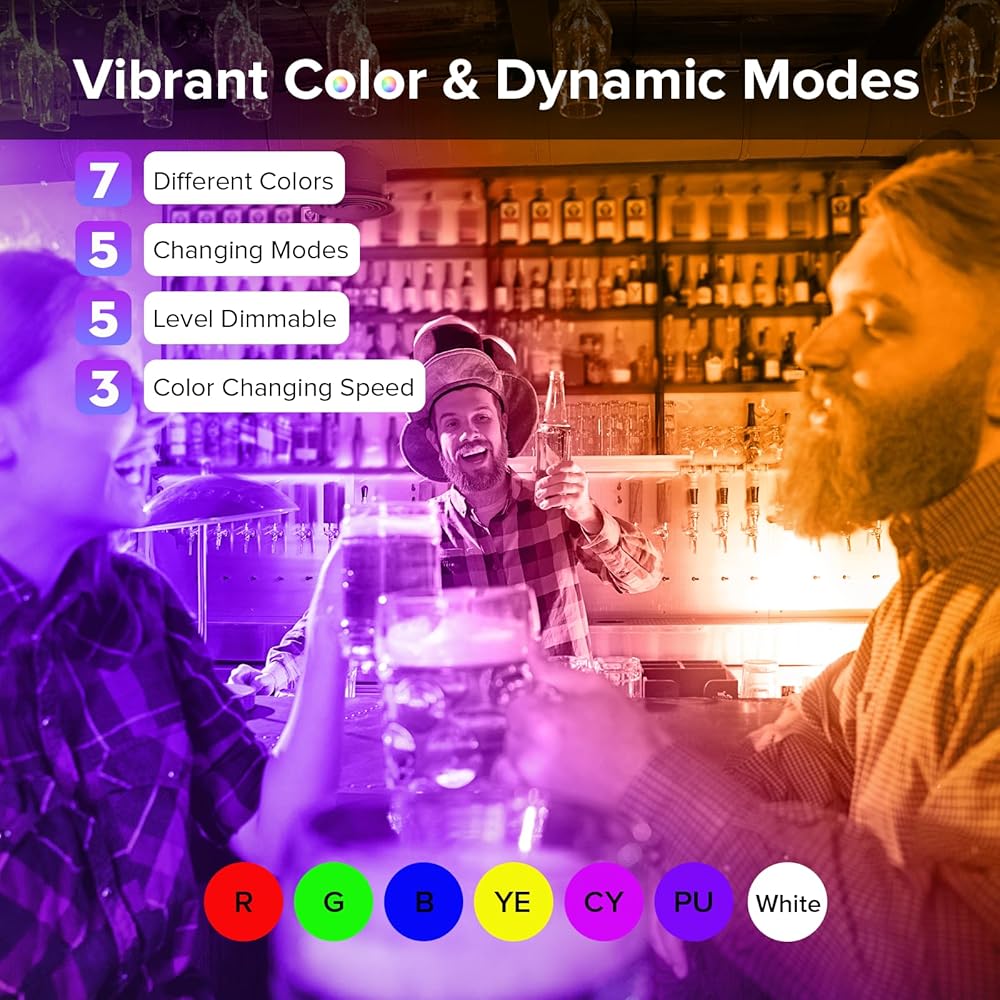 لمبة إضاءة LED متغيرة الألوان: المصابيح متوفرة بـ 10 ألوان و3 أوضاع إضاءة ديناميكية (ناعمة، وامضة، وبهتانية) للحصول على تجربة بصرية أفضل. كما أنها توفر للعملاء ضوءًا أبيض مع درجة حرارة لون قابلة للتعديل (2700 كلفن، 4000 كلفن، 6500 كلفن) لتلبية أي احتياجات استخدام لديك.