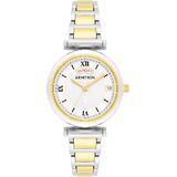 - قرص فضي اللون مع نوافذ تقويم اليوم/التاريخ؛ عقارب ذهبية اللون؛ علامات سوداء وأرقام رومانية ومسار الدقائق الخارجي