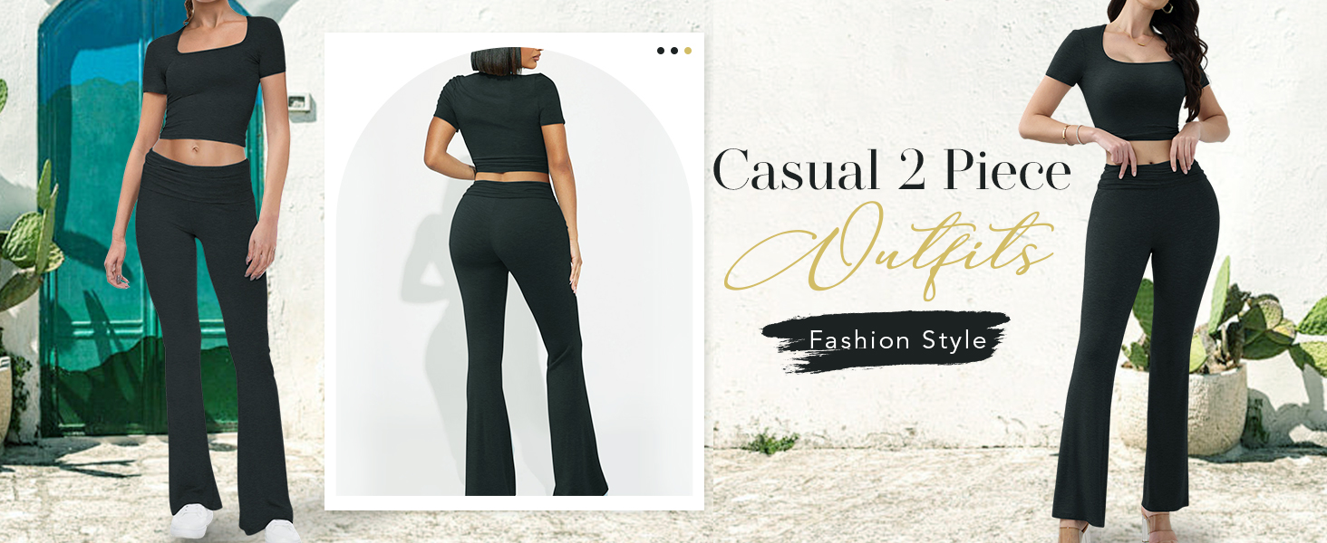 تشمل العبوة: 1 × قمصان نسائية قصيرة الأكمام + 1 × بنطال نسائي ذو قصة ضيقة.