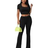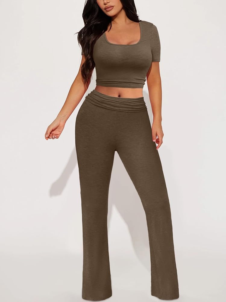 السمات: ملابس نسائية مكونة من قطعتين بأكمام قصيرة، مجموعات سراويل ضيقة، مجموعة سراويل ضيقة، رفع المؤخرة، لون ثابت.