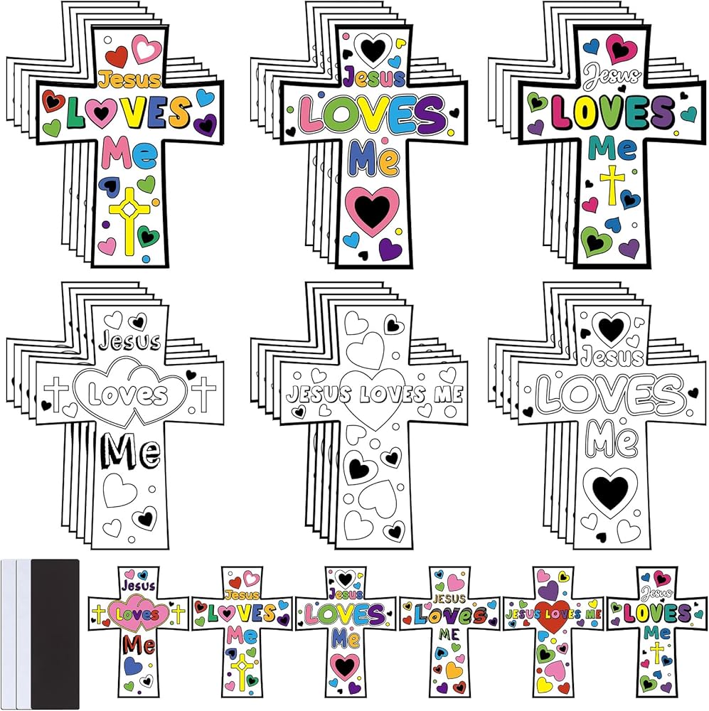 Quality Materials: these Jesus Loves Me cross shaped cards are made of quality white cardstock, easy to color, lightweight and reliable, the size of the cross shaped cardstock is about 6.5 x 5 inches/ 16.5 x 12.7 cm, and the size of the magnetic strip is about 0.8 x 2.4 inches/ 2 x 6 cm, which is suitable for your use