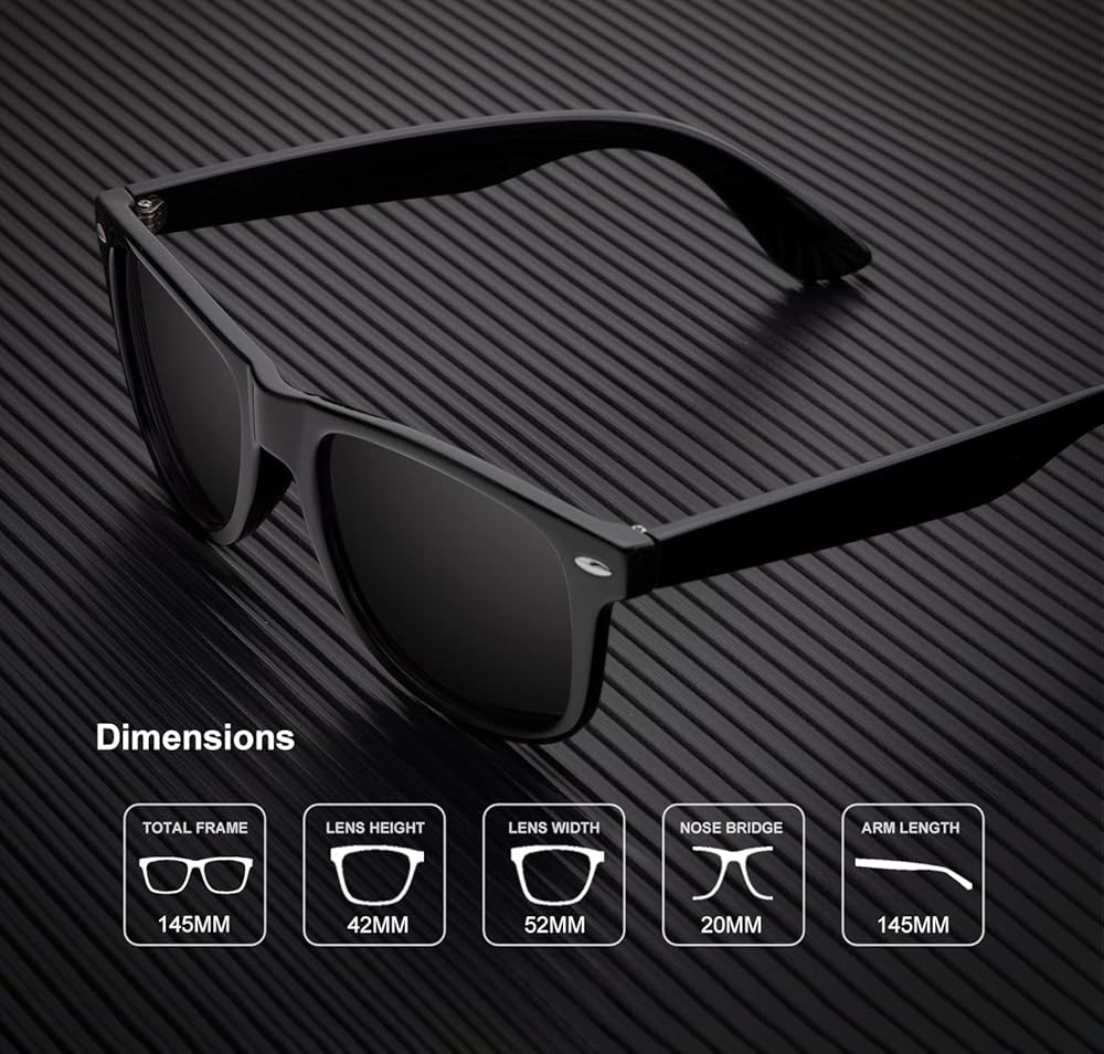 ★ تحرك بحرية واشعر بالحرية ◀ نحن نعلم كيف يمكن أن تكون الإطارات غير مريحة وكيف يؤثر ذلك على كل مرتديها. نحن نهتم برؤيتك ونريد مساعدتك في الحفاظ على نظارتك الشمسية طالما كنت في حاجة إليها. لذلك اخترنا مواد خفيفة للغاية لإطار النظارات، والعدسات المستقطبة المقاومة للكسر، واهتممنا بأن يتم تنعيم كل حافة وصقلها حتى تنسى أنك ترتديها في الشمس. لم يكن ارتداء النظارات الشمسية أكثر راحة وأمانًا وراحة من الآن!
