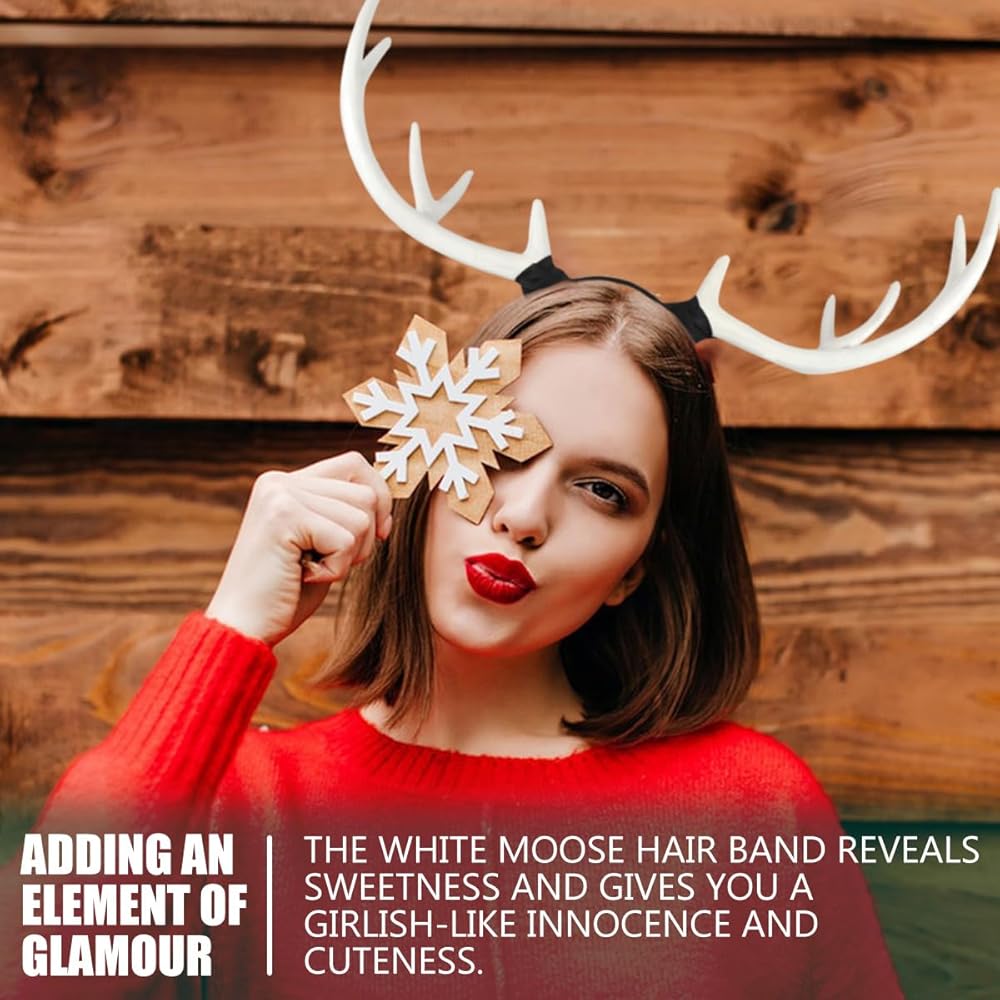 عصابة رأس كبيرة للأذن من قرن الوعل، عصابة رأس من قرن الغزال الأبيض لحفلات عيد الميلاد، عصابة رأس من قرن الوعل للأطفال والكبار، وتزيين المنزل