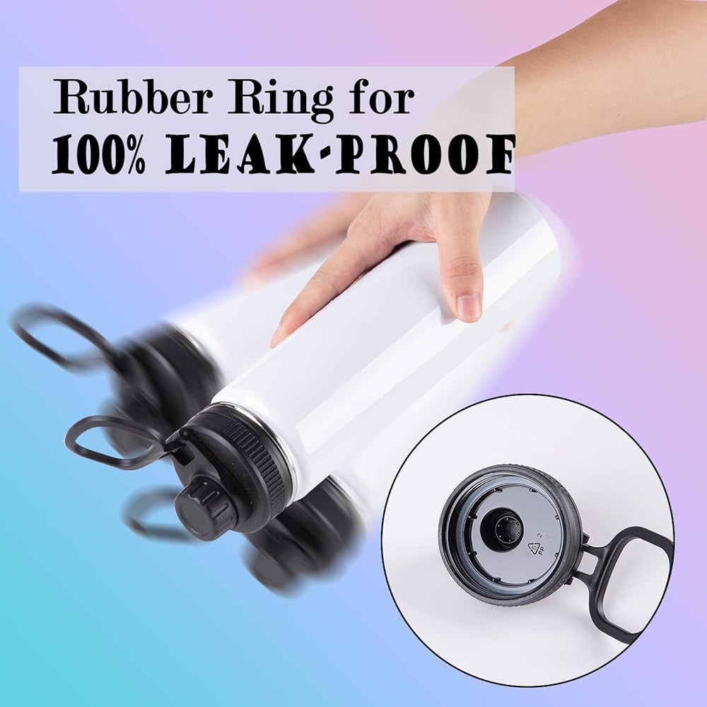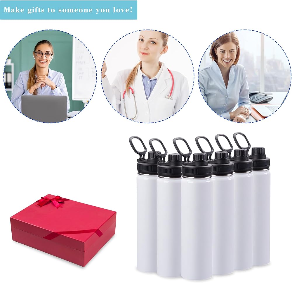 6 عبوات من زجاجات المياه الفارغة، 24oz زجاجات مياه معزولة مخصصة مع مقبض وغطاء صنبور، من الفولاذ المقاوم للصدأ، هدية مضادة للتسرب DIY للمعلمة والممرضة الرياضية والسفر والمشي لمسافات طويلة في صالة الألعاب الرياضية، باللون الأبيض
