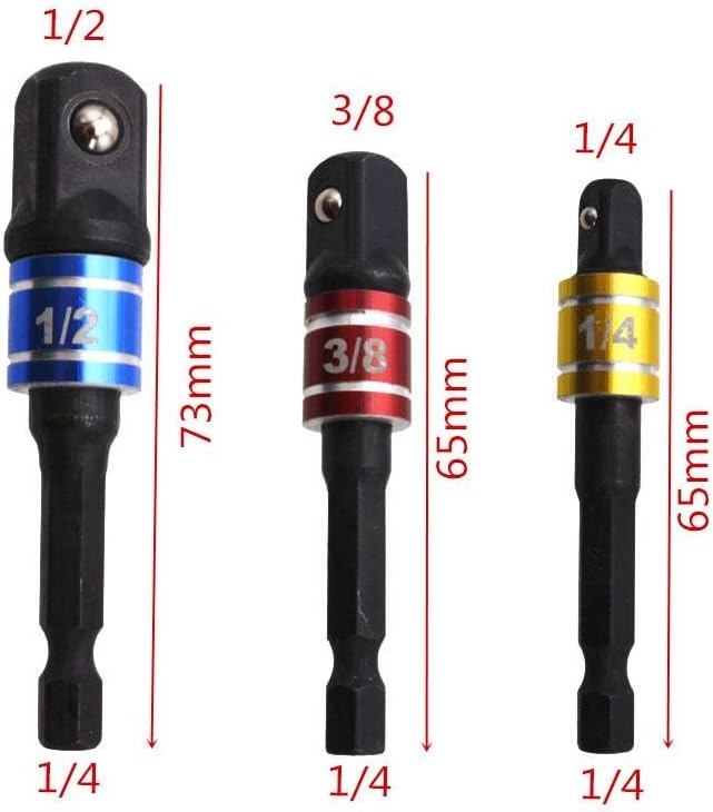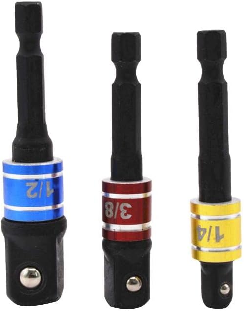 COMPATIBILITY: Impact drive socket adapters are compatible with all brands of electric drills, and the spring-loaded pressure ball design ensures that the adapters work safely with 1/4", 3/8" or 1/2" drive sockets.