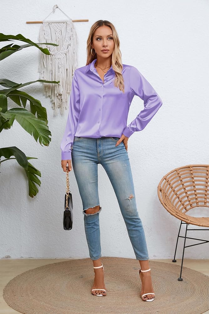 هدية خاصة: هذا القميص الحريري الساتان كلاسيكي وعصري وكلاسيكي وخالد. إنها هدية تستحق أن تقدمها لها. يمكن أن تكون إحدى أفراد عائلتك العزيزة، أو صديقتك أو صديقتك، أو ألطف نفسك. إنه لأمر سعيد للغاية أن تتلقى هدية خاصة في كل يوم عادي من حياتك.
