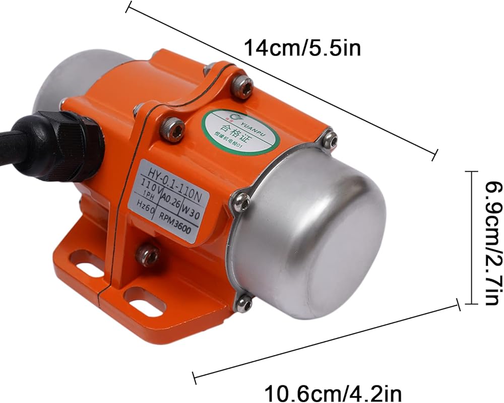 محرك اهتزاز 30 وات محرك اهتزاز: الطاقة: 30 وات؛ الجهد االكهربى: 110 فولت/مرحلة واحدة؛ السرعة: 3600 دورة في الدقيقة؛ قوة الاهتزاز: 20 كجم/0.2 كيلو نيوتن؛ فئة العزل: F؛ فئة مقاومة للماء: IP65؛ حجم المنتج: حوالي 14*10.6*6.9 سم/5.5*4.2*2.7 بوصة
