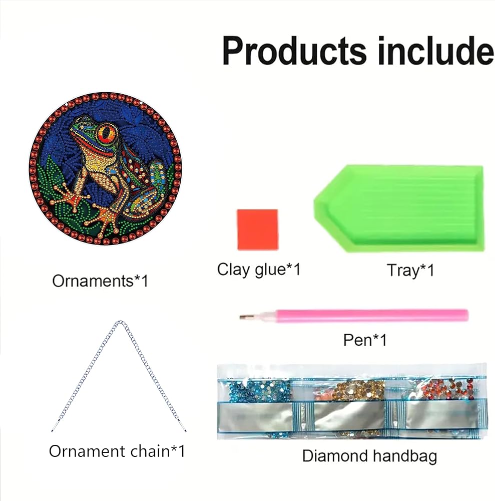 Frog COMPLETE CRAFT SET INCLUDES: 1 x SIZE: 19 x 19 cm/7.48 x 7.48 inch.crystal art hanging sign, 1 x Pick up pen, 1 x Tray, Bags of resin gems,Jelly wax. The beads look very shiny and sparkling. This beautiful crystal sign kit is perfect for adding color and luster to your front door or wall!