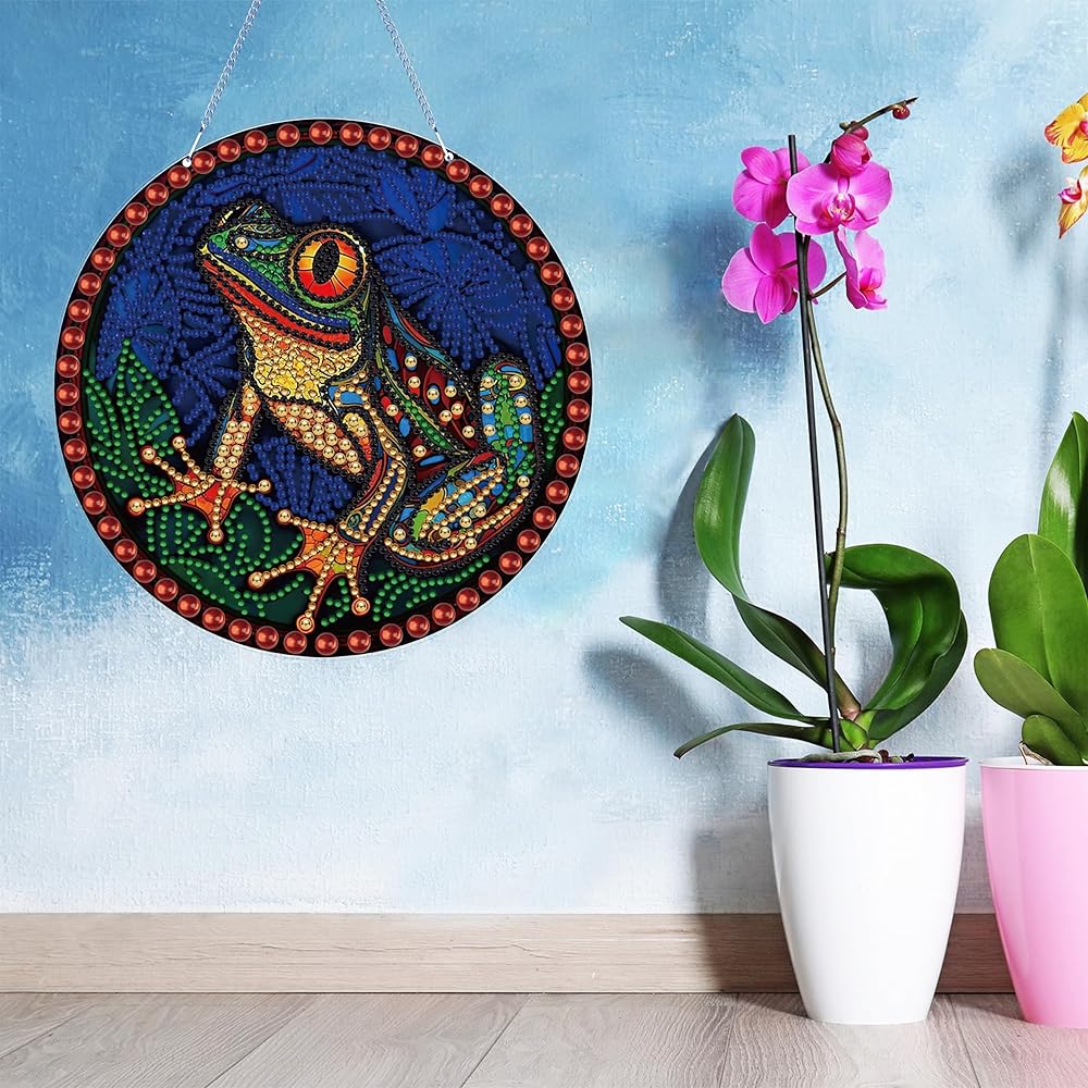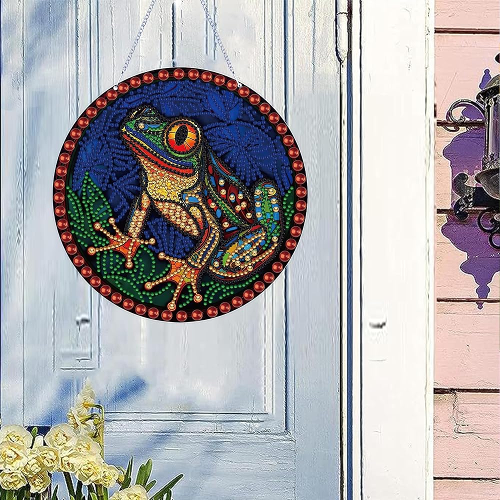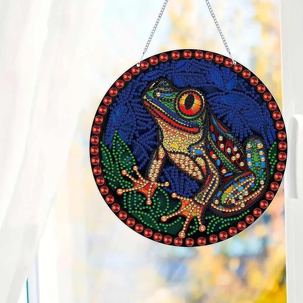 DIAMOND PAINTING SUNCATCHERS Sets- 5D Frog diamond painting kits Garden Suncatchers with crystal DIY painting kits set with crystal pendants in separately bag. Easy DIY diamond painting for begginers adults kids.