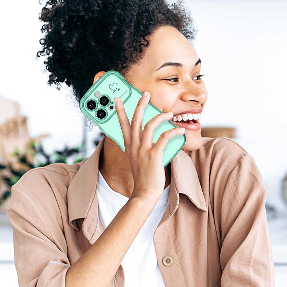 حافظة لطيفة ومموجة - نمط قلب الحب الموجود على إطار عدسة الكاميرا وجانبها لطيف وعصري؛ الحافة الفاخرة المطلية بالذهب تجعل هاتفك يبدو مختلفًا وأنيقًا وملفتًا للنظر؛ يمكن أن تكون هدية لطيفة لعائلتك وأصدقائك، مصممة خصيصًا للنساء والفتيات