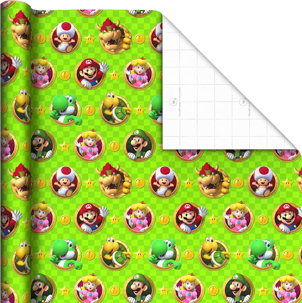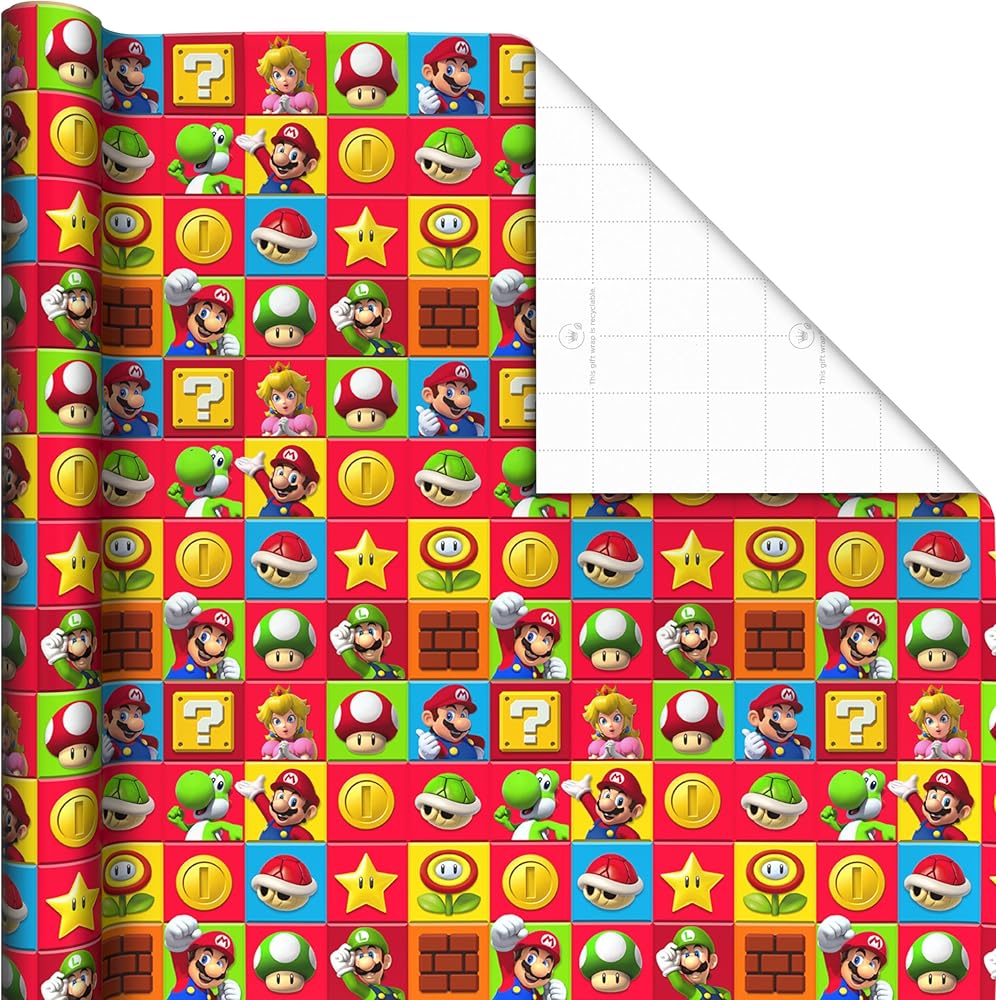 Celebrate kids and Nintendo fans of all ages with this fun set of Super Mario wrapping paper. Featuring bright colors and favorite characters including Mario, Luigi, Yoshi, Bowser, Princess Peach and Toad, this pack of cool wrapping paper rolls is great to have on hand for birthdays, kids parties, Christmas, Halloween, Valentine's Day, Father's Day, back to school and everyday special occasions. The Hallmark brand is widely recognized as the very best for greeting cards, gift wrap, and more. For more than 100 years, Hallmark has been helping its customers make everyday moments more beautiful and celebrations more joyful.
