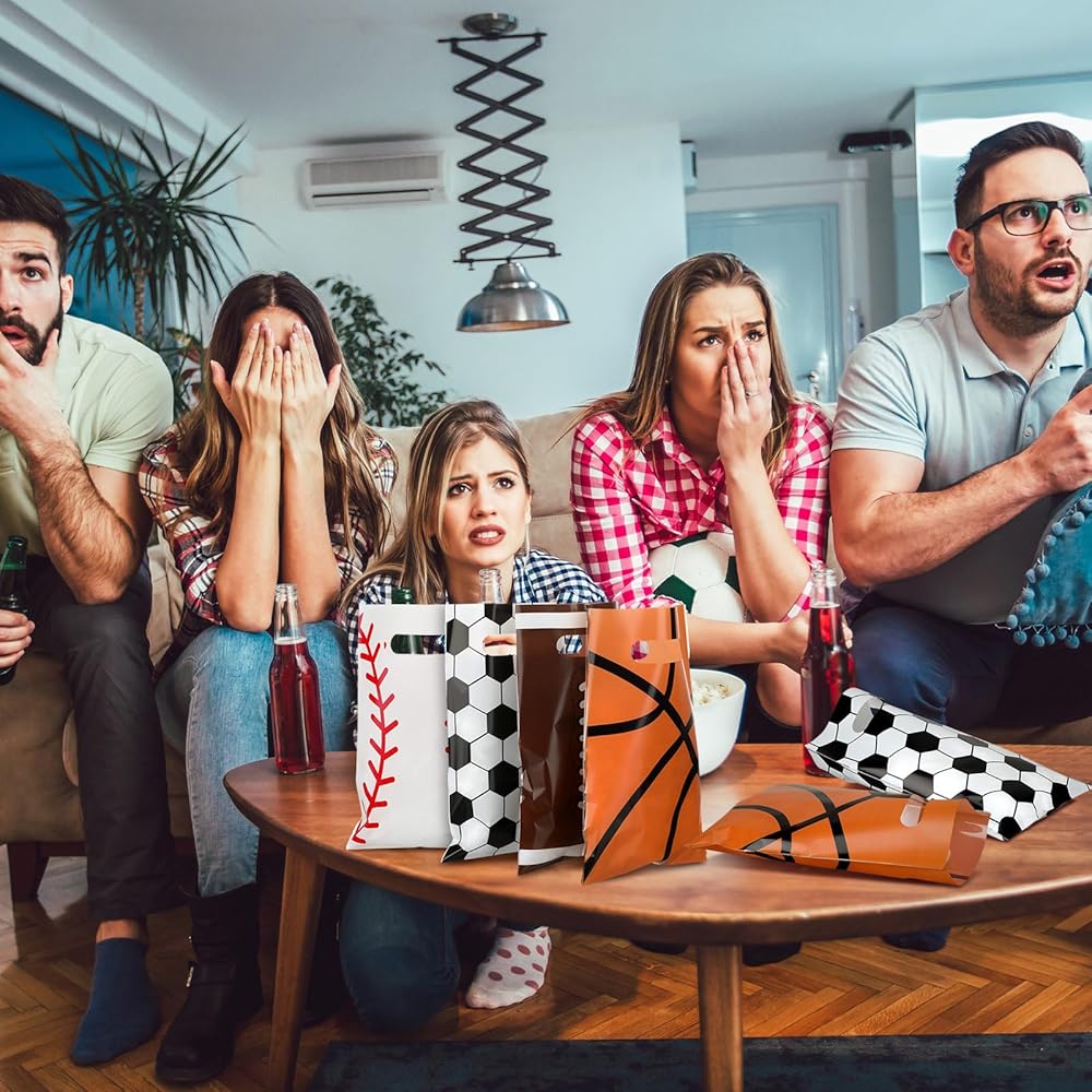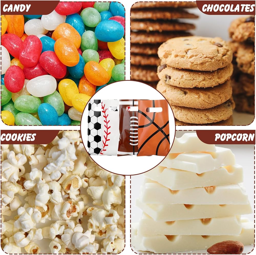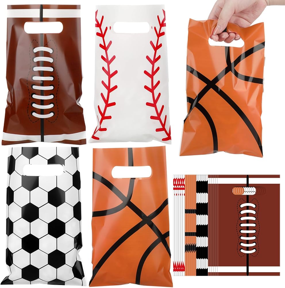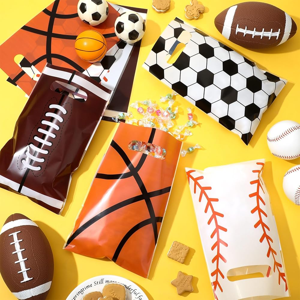 • Game Day Ready with 4 Styles Sports Theme Design: no need for a timeout on fun; Our sports themed treat bags are here to get your victory dance started; Spectacularly designed in 4 sports styles, including basketball, football, soccer, baseball, providing a delightful mix of variety and enthusiasm; So, whether it's match day or just a casual party, keep your rally towels waving high and your spirits higher with our delightfully designed favor bags