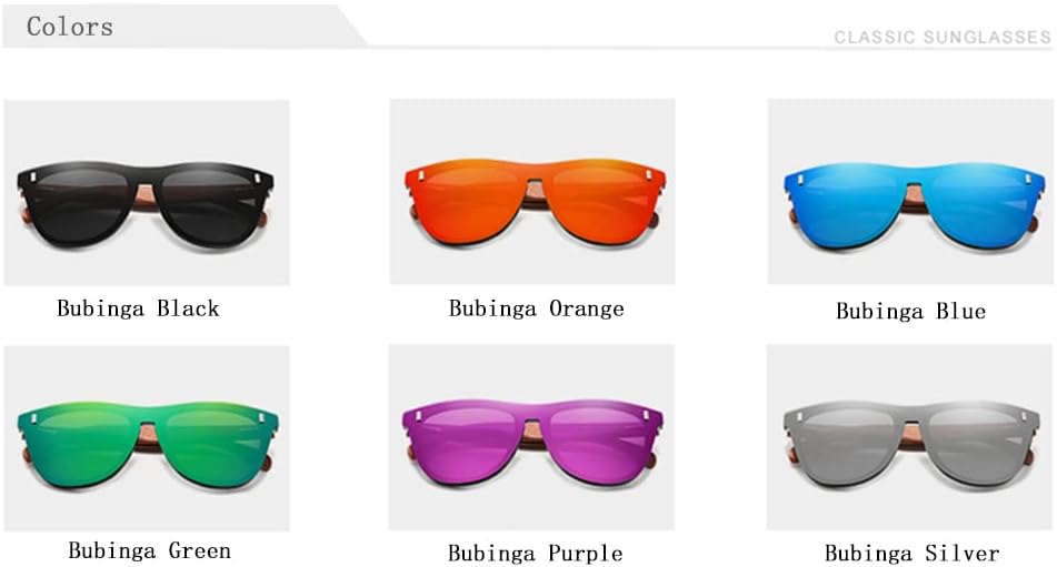 COMFORTABLE DESIGN: Bubinga wood made sunglasses suitable for both men and women. Ultra light and comfortable to wear. Fashionable colors to choose: black, blue, orange, green, etc.