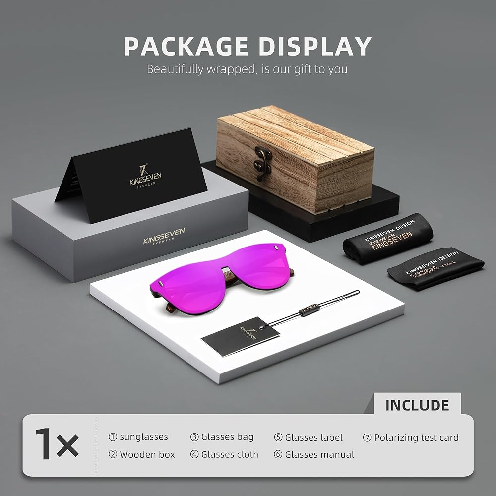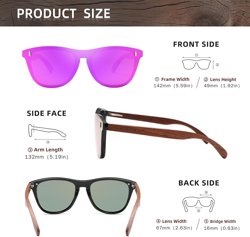 KINGSEVEN Bubinga Polarized Sunglasses Retro Vintage Stylish Design for Men Women, Mirrored Lens B5510
