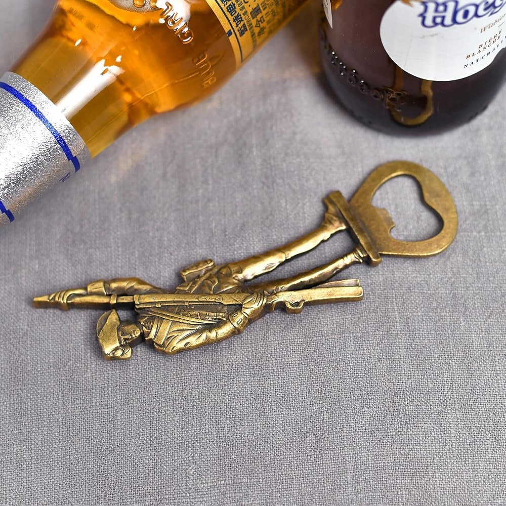 Using the Beer Bottle Opener to Service Your Friends, Customers, Family Members; Make Them Feel Welcome, Warm and Special. This is a heavy-duty metal flat bottle opener, it's vintage style, old-fashioned design and retro taste. It's a great wine tool for home, kitchen, bar, restaurant, office, outdoor, campaign, store and any occasions. Specification: 1. Bottle Opener Material: Zinc alloy 2. Color: Bronze Package Includes: 1 x Bottle Opener 1 x Black Gift Box